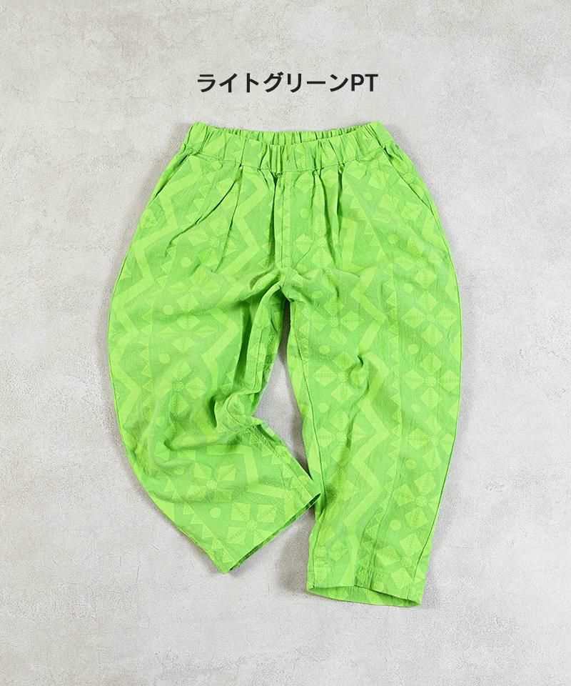 色鮮やかなカラーとソウガラが印象的なパンツ。