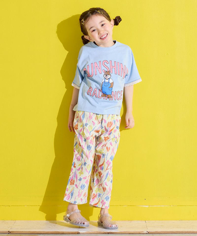 タックインをして色鮮やかなプリントを強調するスタイルも◎