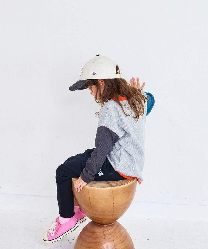 アイボリーのボディに、つば部分だけグレーのコーデュロイ素材を切り替えた別注デザイン。