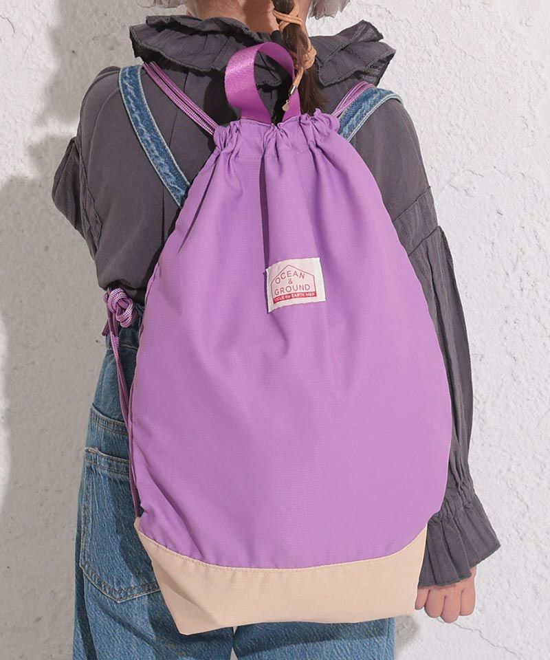 サブバッグ・手提げとして、巾着のように絞るとリュックとして背負えます。