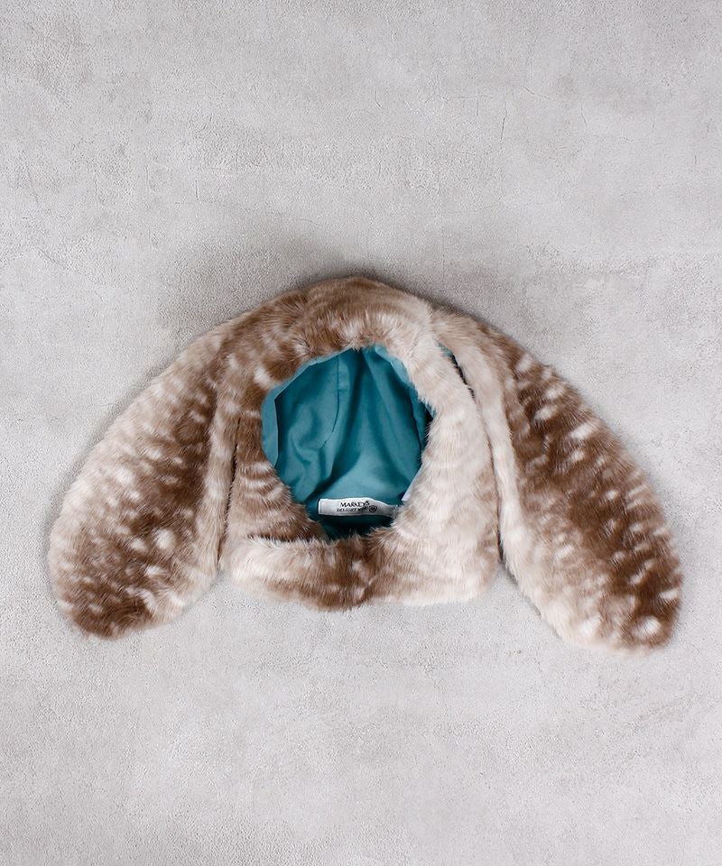 ふんわりとしたフェイクファーに、長めの“うさみみ”が付いた遊び心あるデザイン。
