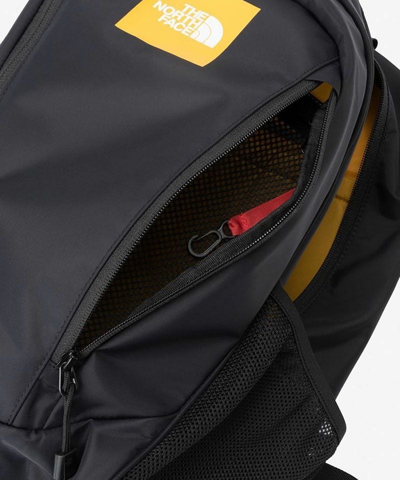 サイドにはボトルなどが入れられるメッシュポケットを配備。肩にフィットするショルダーハーネスには、一定の荷重で自動開放する安全性を考慮したホイッスル付きチェストバックルを採用しています。