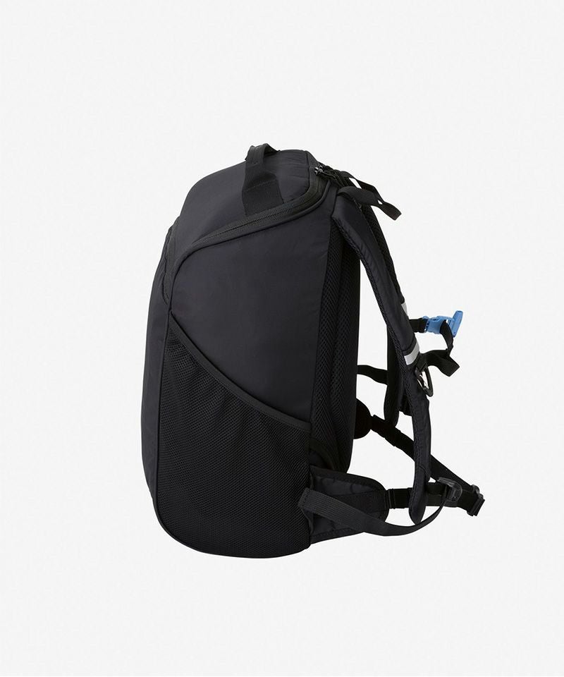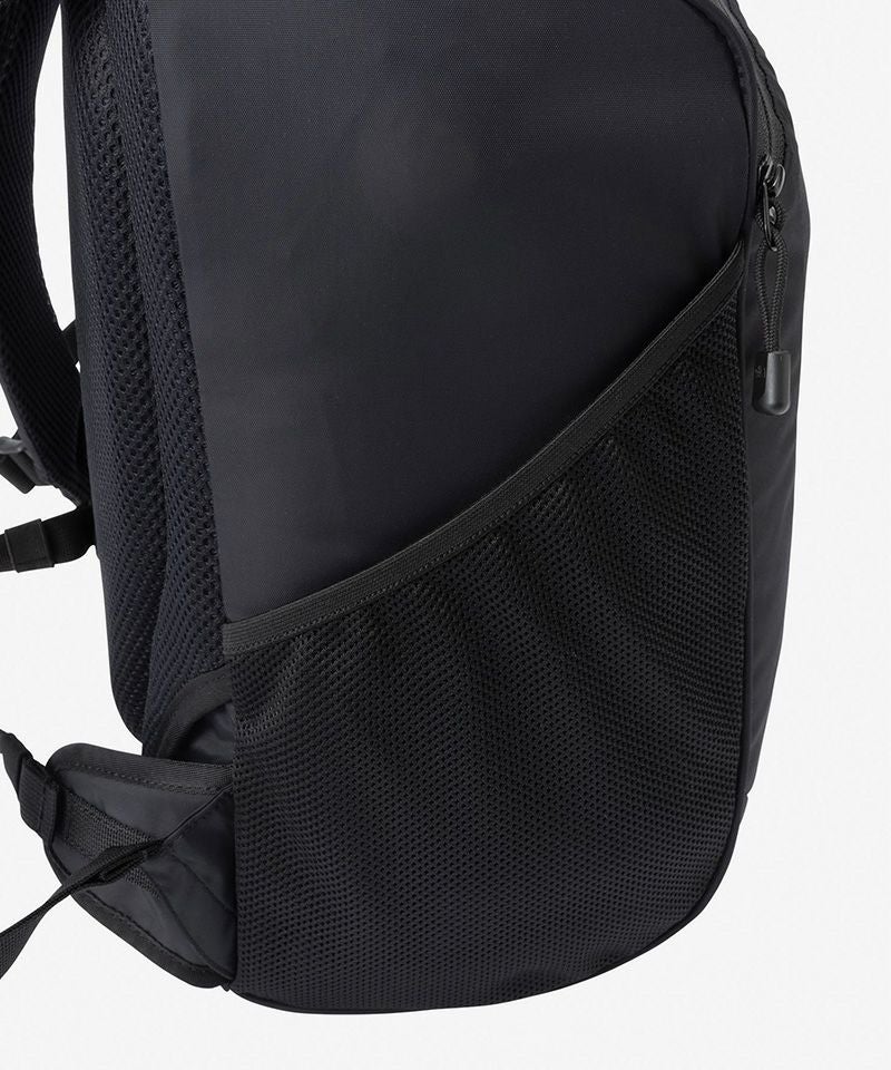 サイドにはボトルなどが入れられるメッシュポケットを配備。