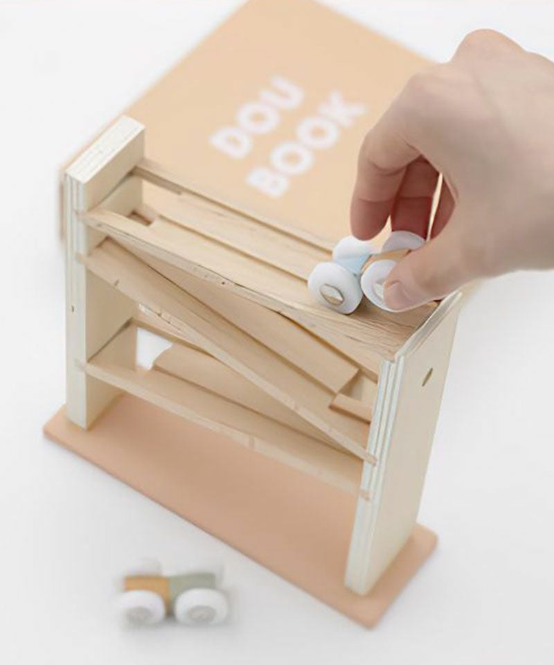 小さな車をスロープに乗せると、走り出すスロープトイです。