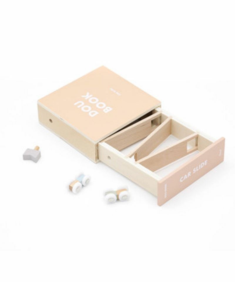 スロープトイはこどもの興味を引きやすく、何度も繰り返し遊ぶことで集中力を高め、付属のクルマをつかんだりはなしたりと手先の感覚を養う効果が期待できます。