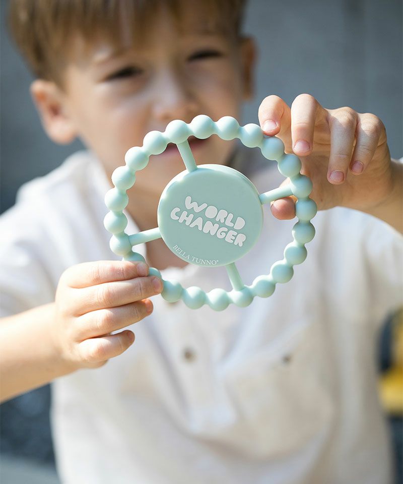 口に入れても安全な[食品グレードシリコーンゴム]で作られた、ベビー用ティーザー(歯固め)です。