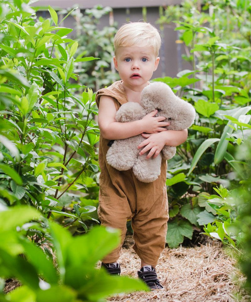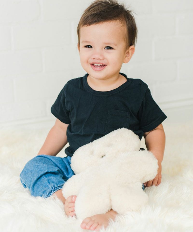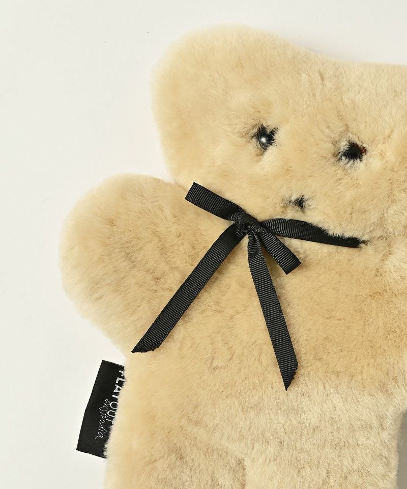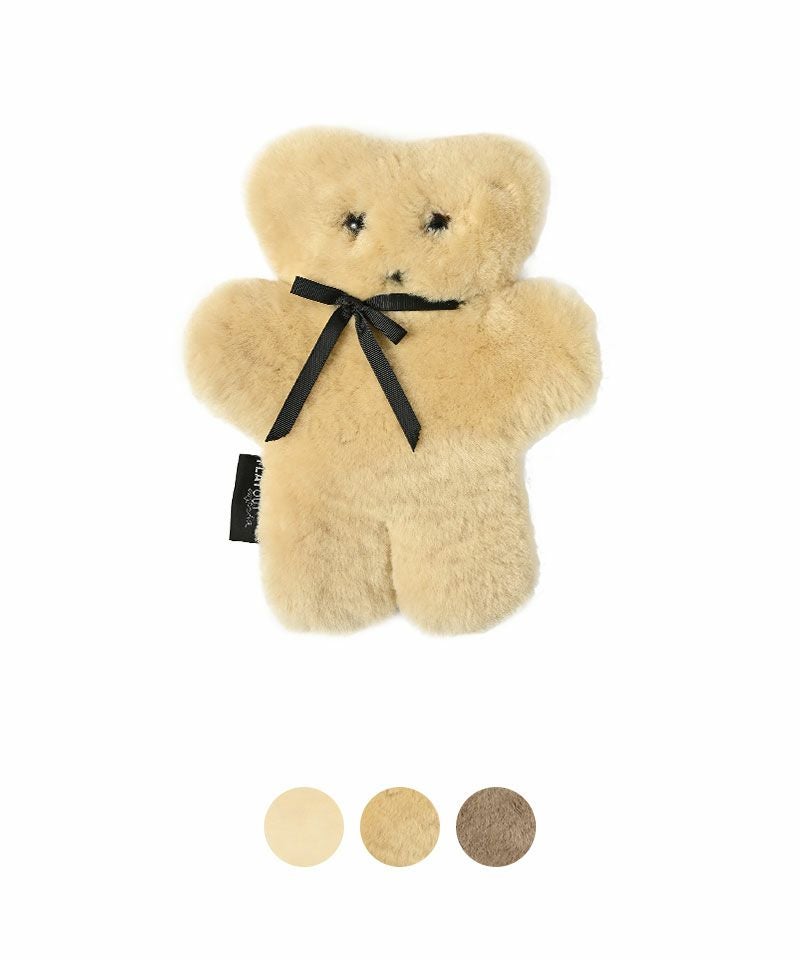 他には無いフラットな形が特徴的で、やわらかな羊毛を使用した心地よい肌ざわりのテディベア。