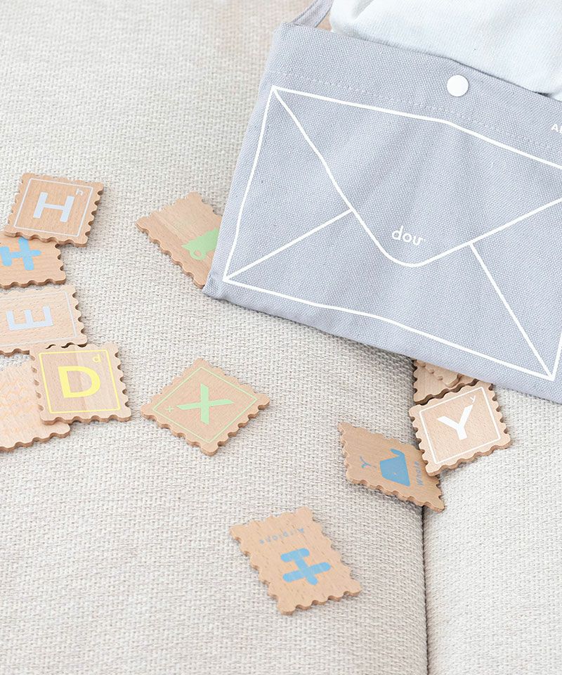 ABC stampは、切手のようなデザインの木のアルファベットカードです!
