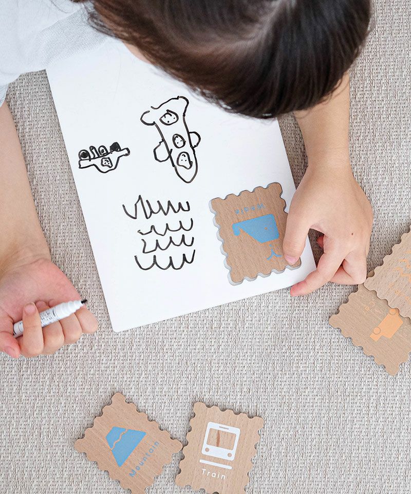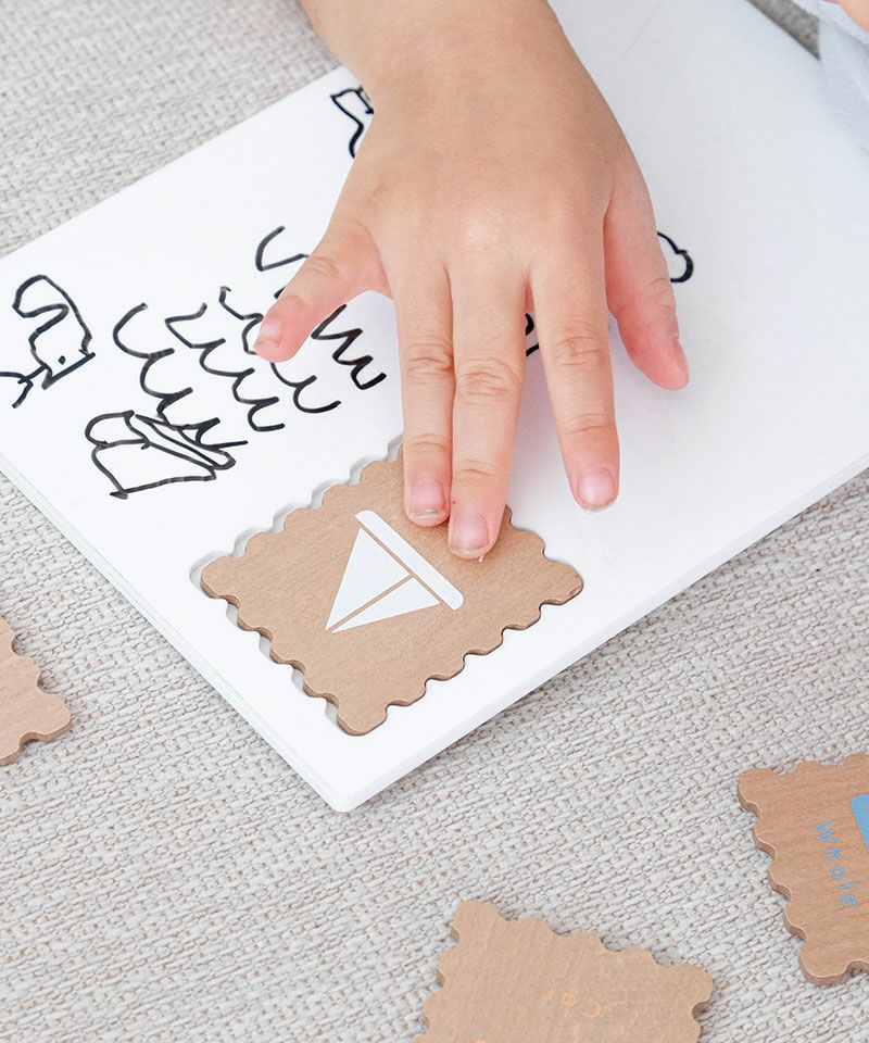 お気に入りのstampを貼れるホワイトのアクリルボードは、ABCやおてがみを書いたり、おえかきをしたり、楽しくアルファベットを学ぶことができます。