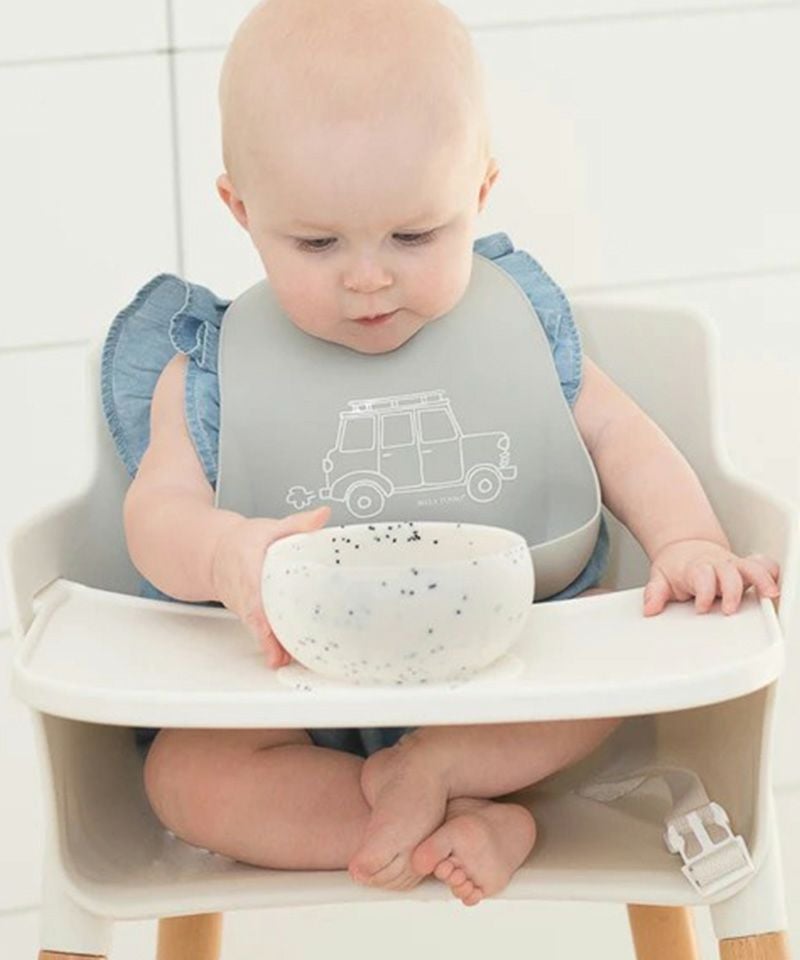口に入れても安全な「食品グレードシリコーンゴム」で作られた、ベビー用ボウル。