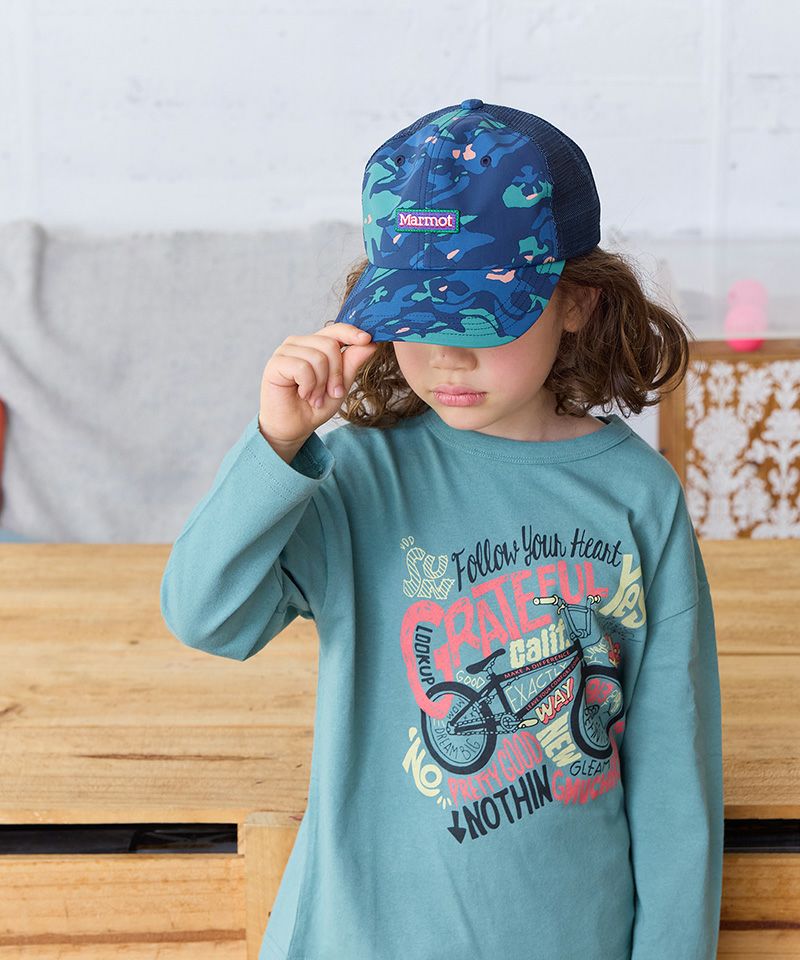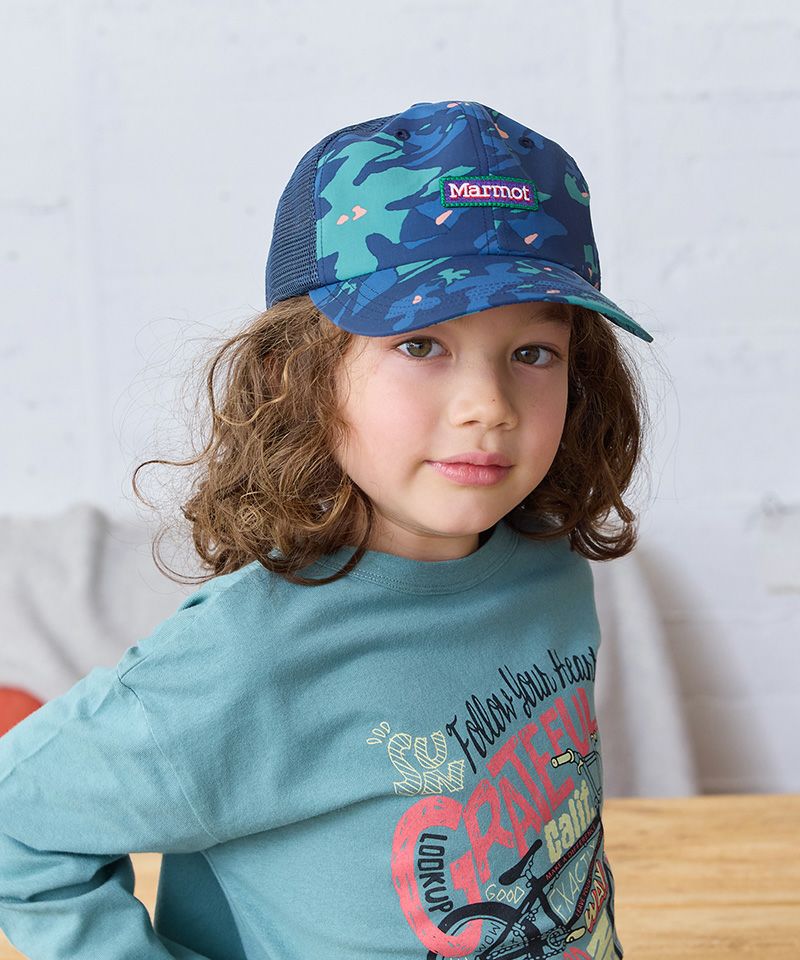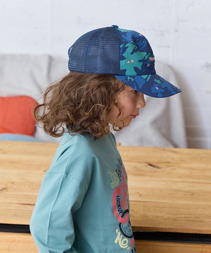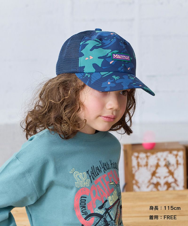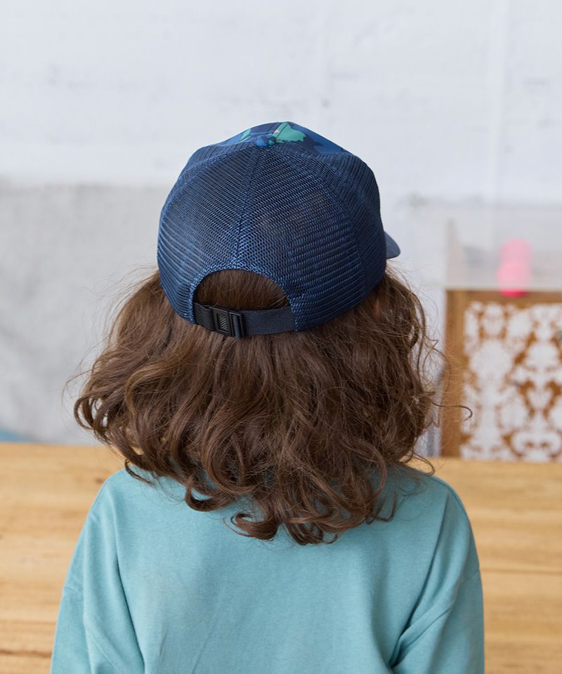 ラウンドしたつば部分と迷彩柄が特徴的なメッシュキャップ。