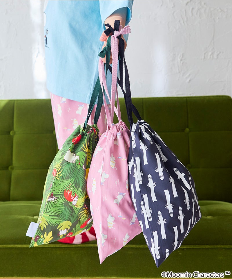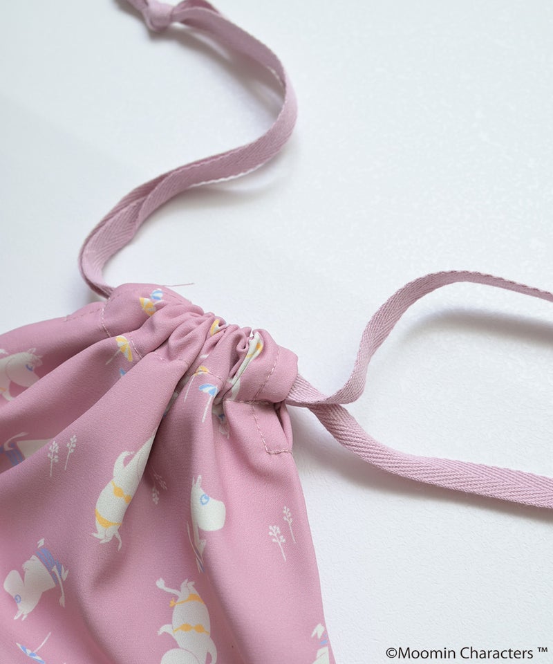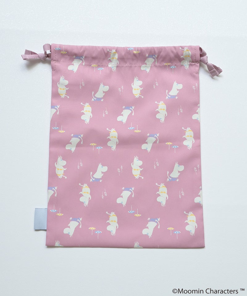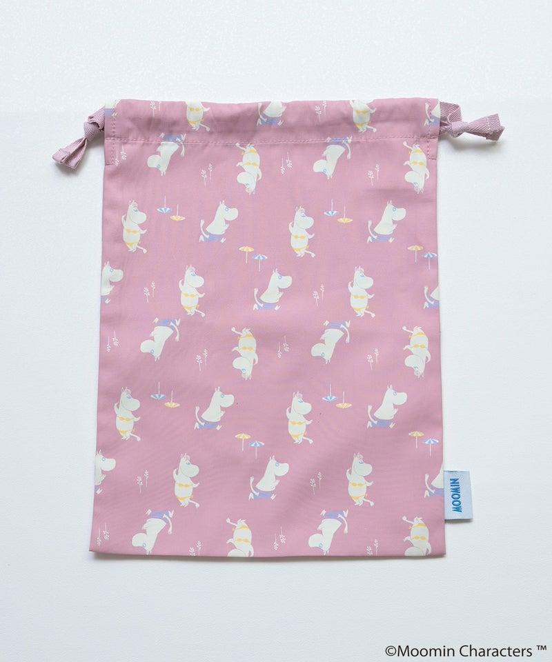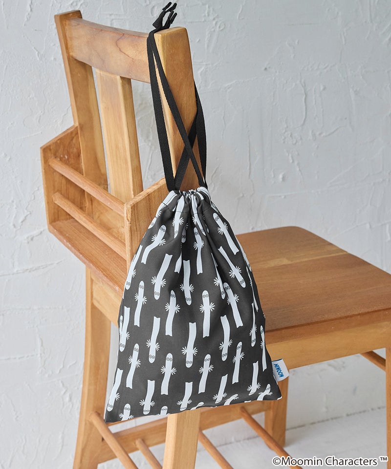 ムーミン谷の仲間たちを散りばめた、やさしい雰囲気の総柄デザインが魅力の巾着。