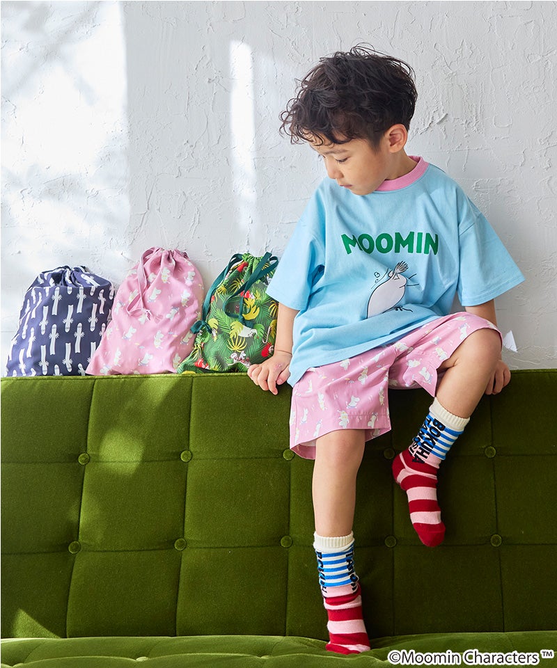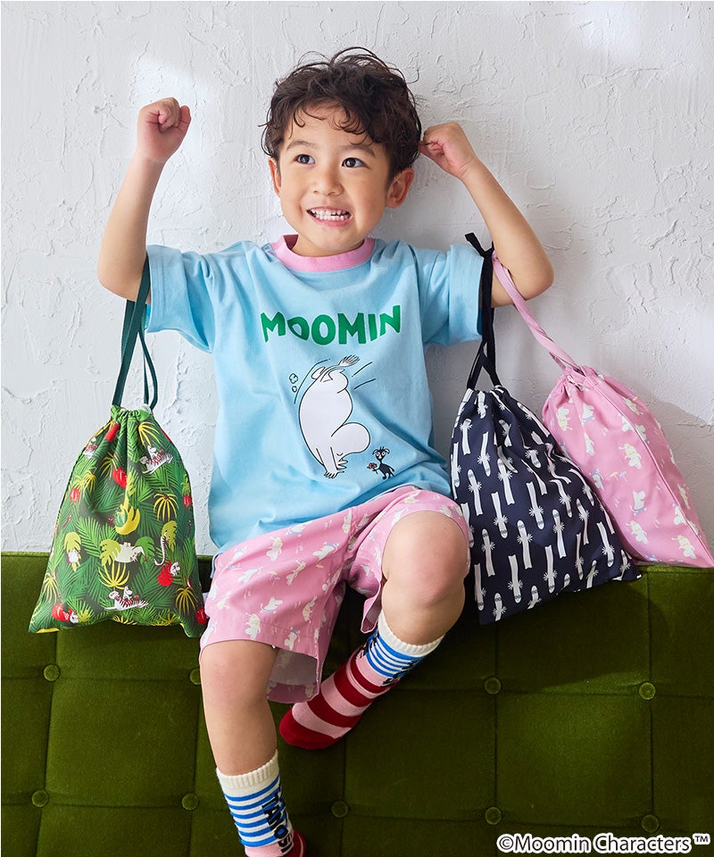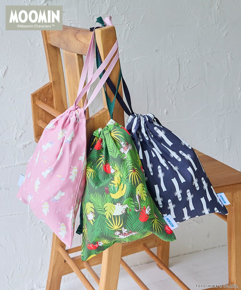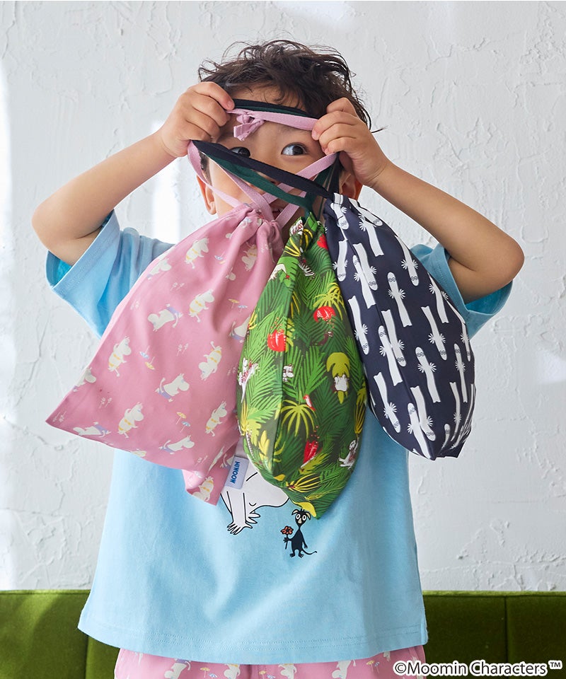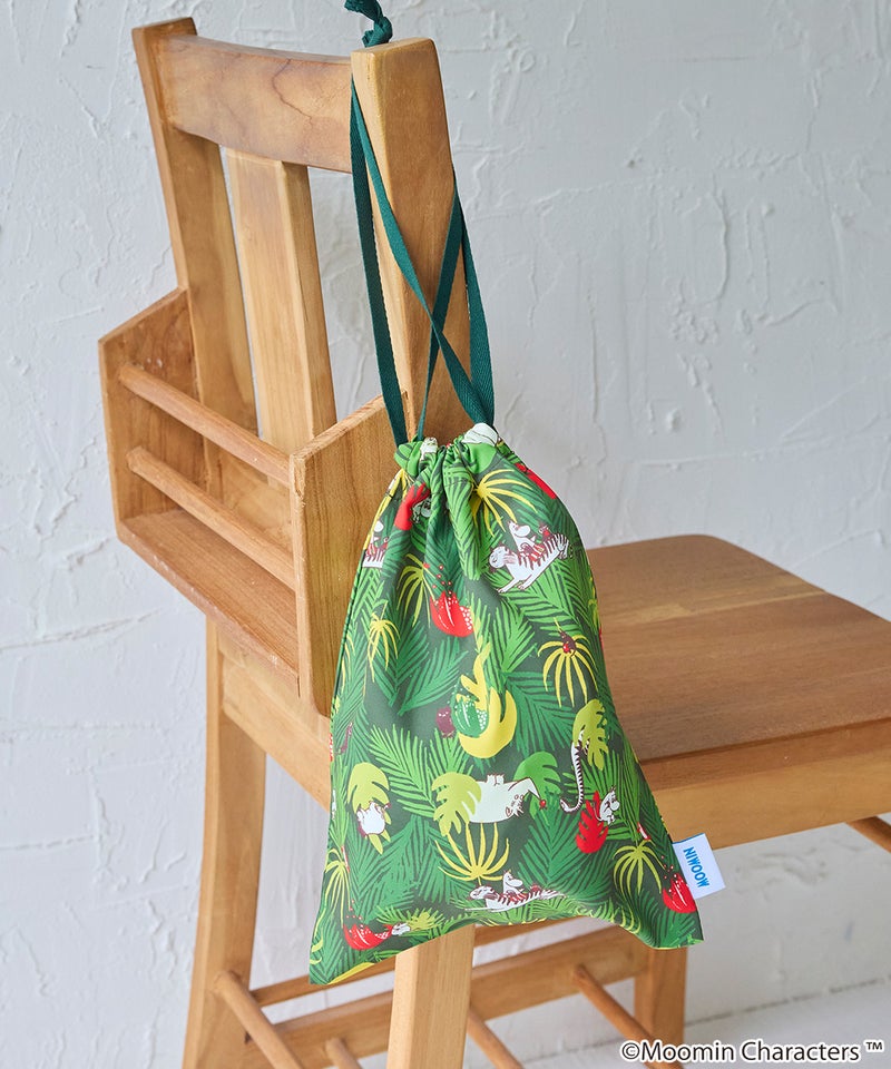 ムーミン谷の仲間たちを散りばめた、やさしい雰囲気の総柄デザインが魅力の巾着。