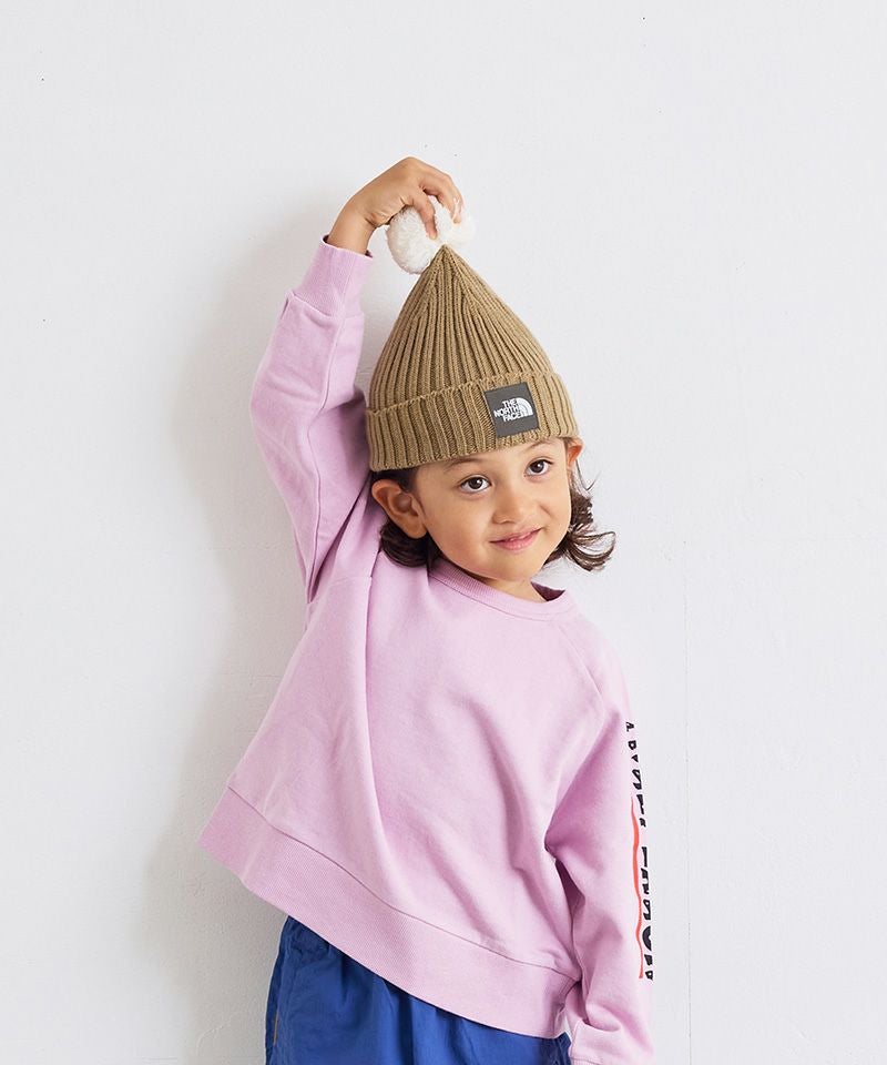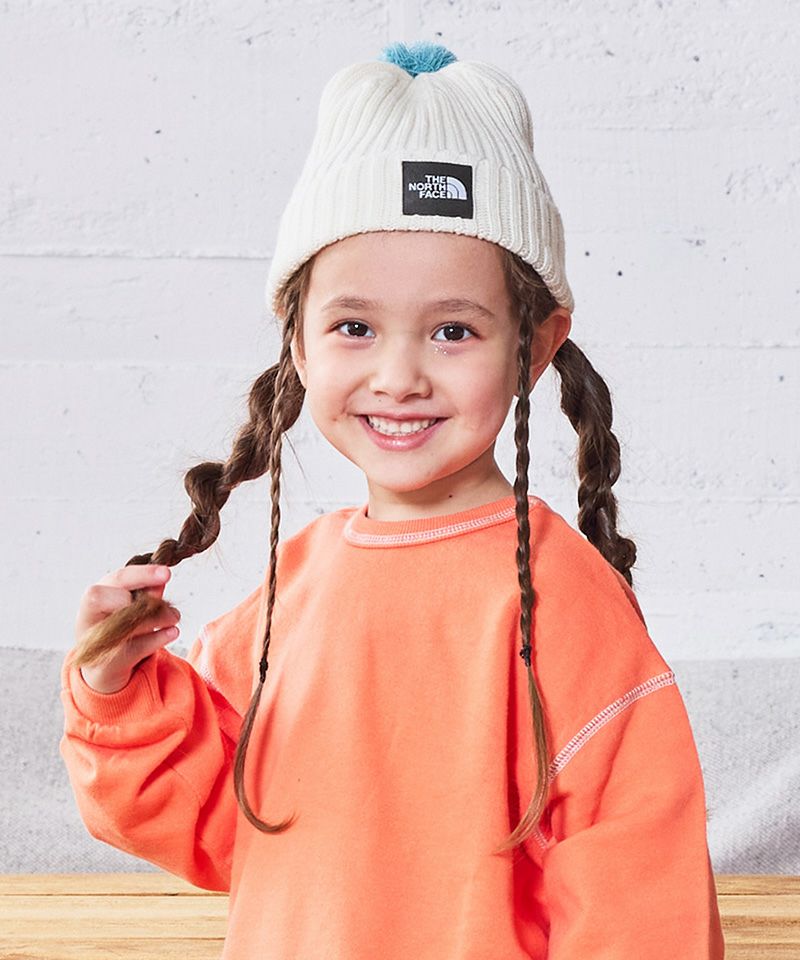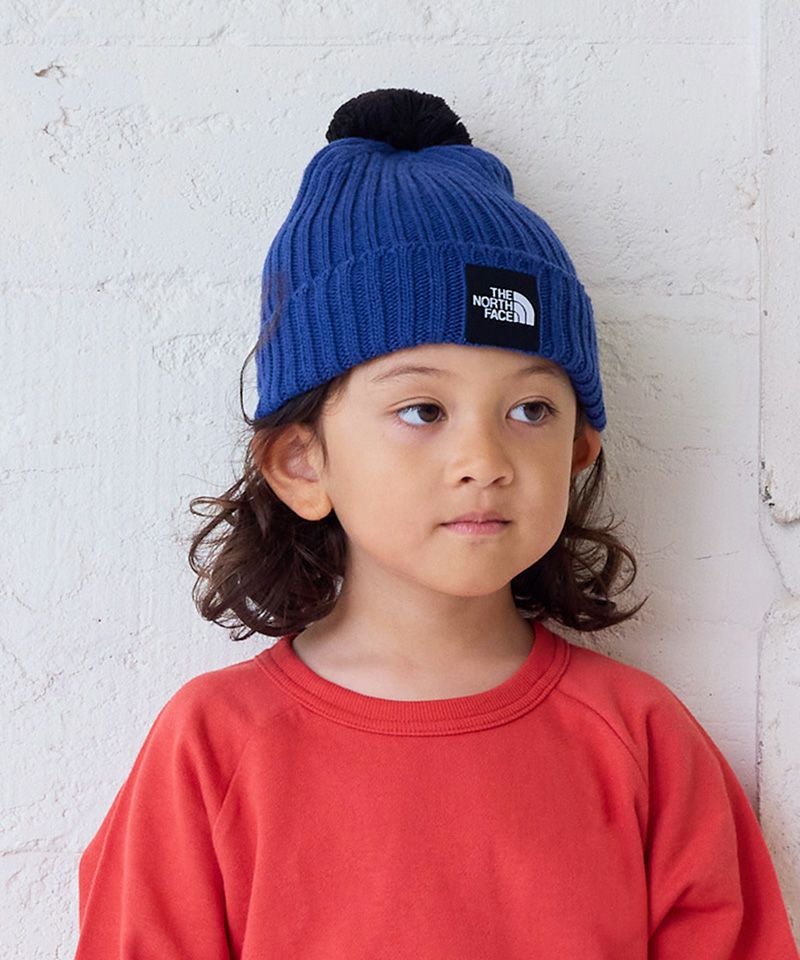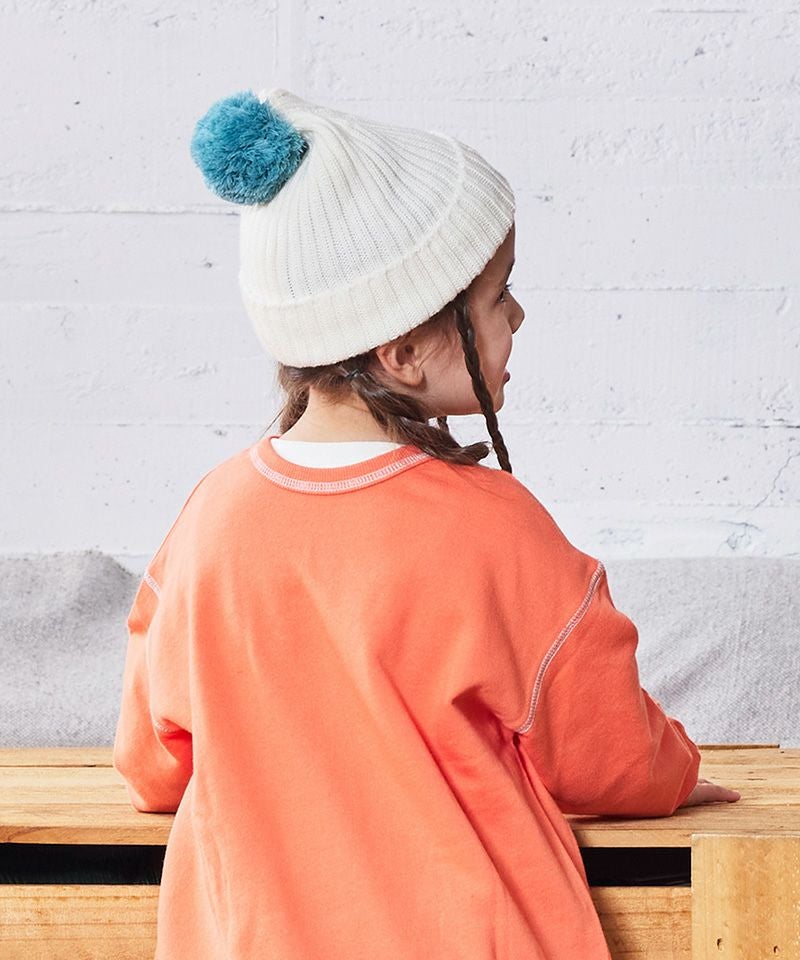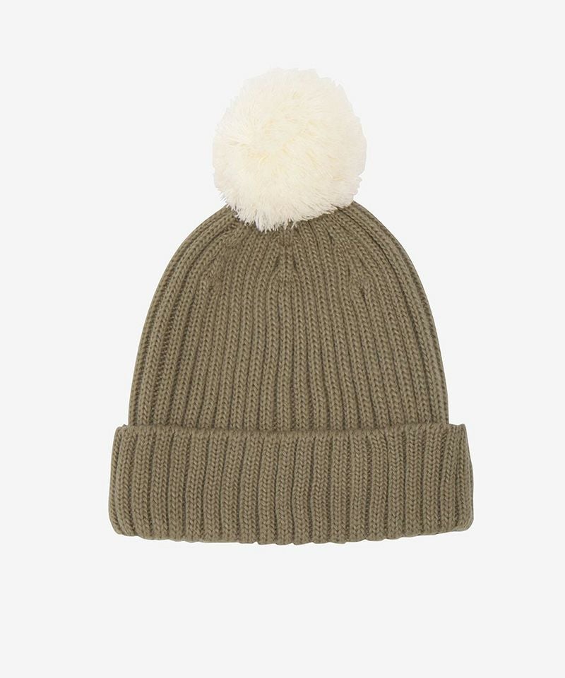 折り返し部分にはスクエアロゴワッペン、先端には大きなポンポン付き。