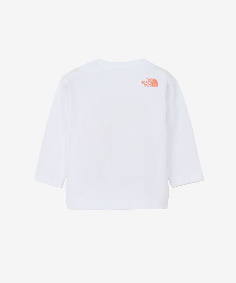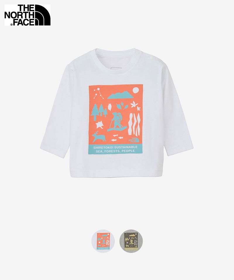 北海道・斜里町の観光シンボルキャラクターである知床トコさんのイラストを配置した長袖Tシャツのベビーモデル。