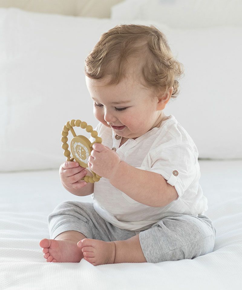 口に入れても安全な[食品グレードシリコーンゴム]で作られた、ベビー用ティーザー(歯固め)です。