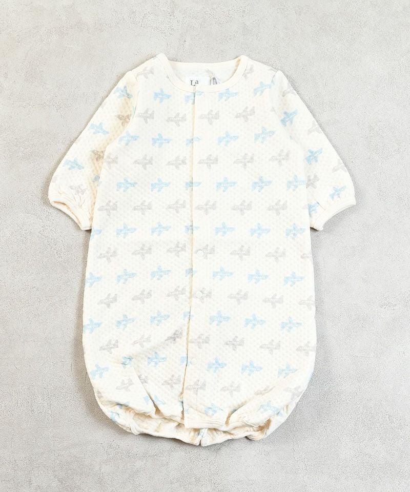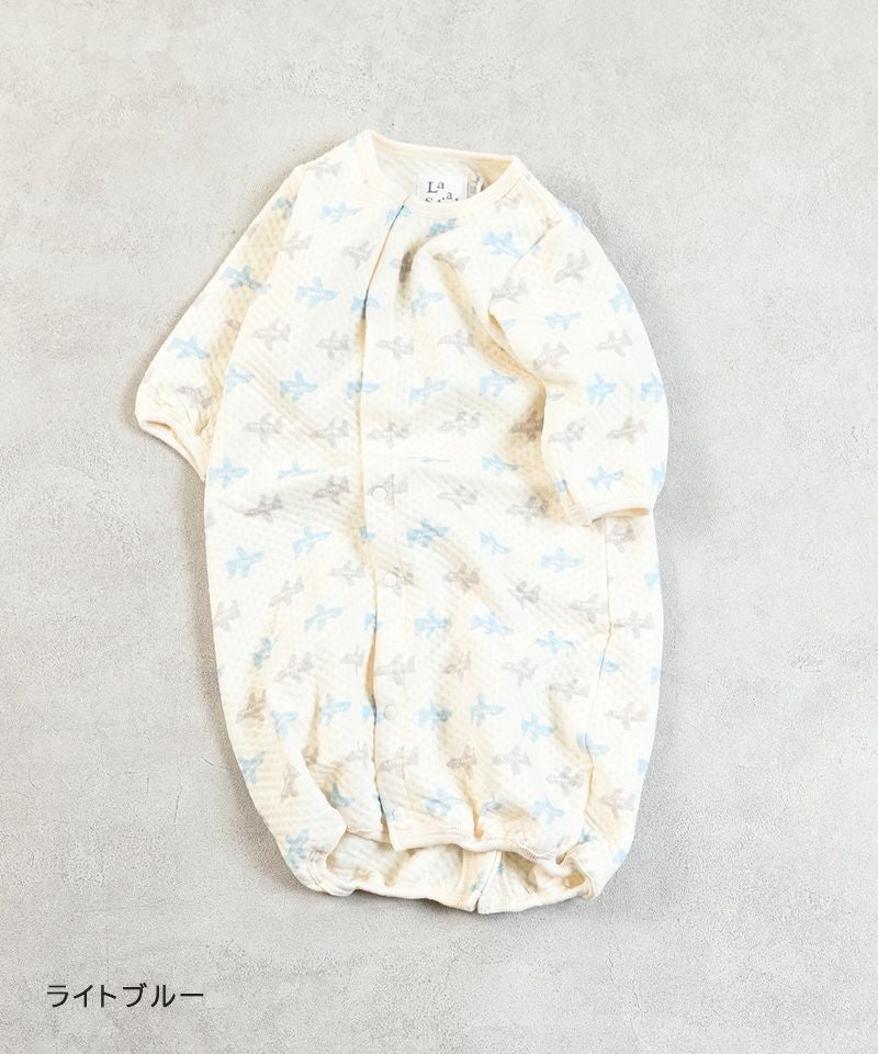 赤ちゃんらしいシンプルな総柄模様が、可愛らしさを引き立てます。