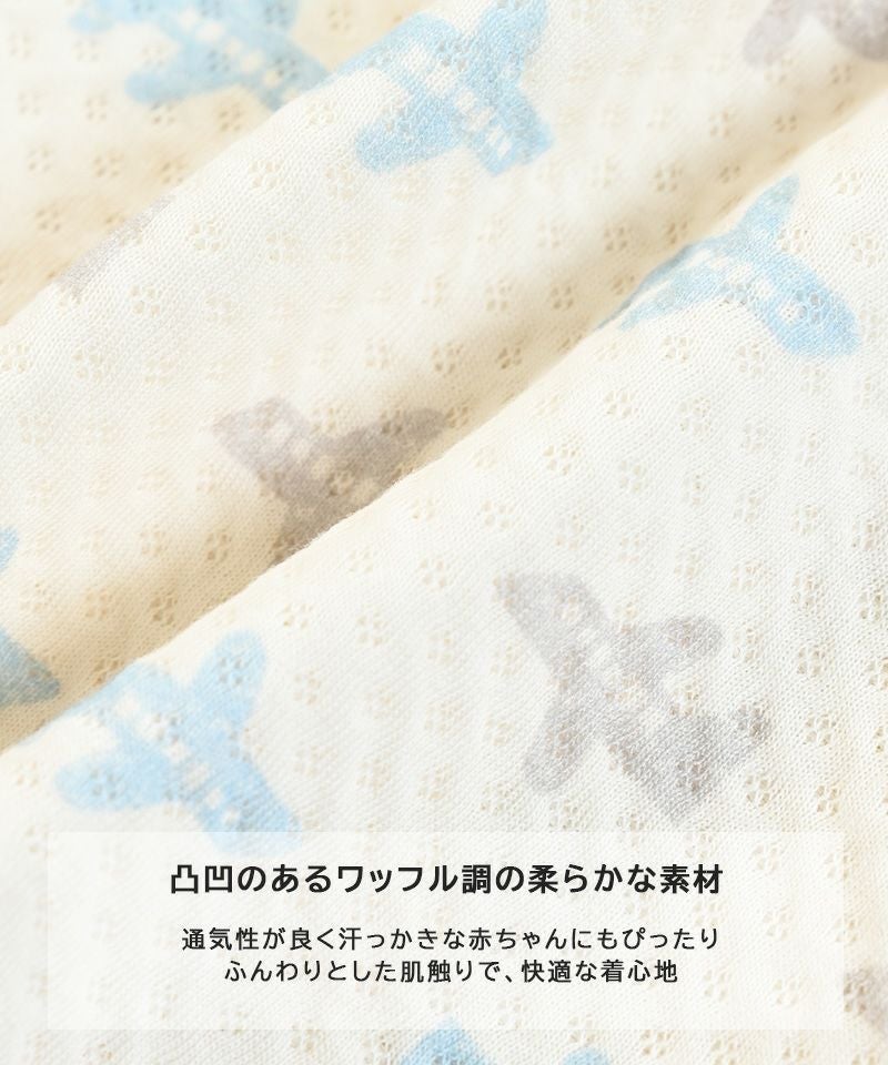 やさしい凹凸感のあるワッフル素材は、通気性が良く汗っかきな赤ちゃんにもぴったり。
