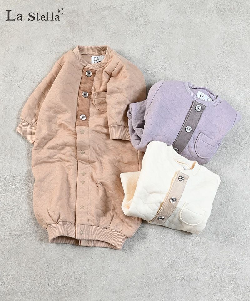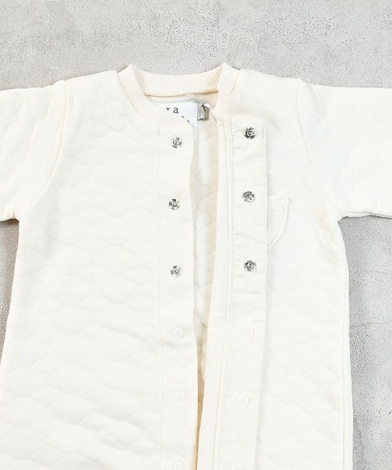 胸元から足元にかけてスナップボタン仕様で、デザイン性と実用性を両立。