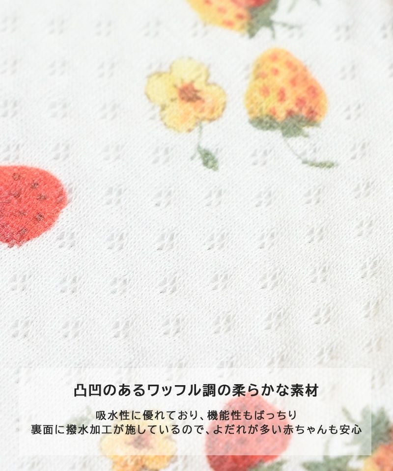 凹凸のあるワッフル調の柔らかな素材が、赤ちゃんの肌にやさしくフィット。