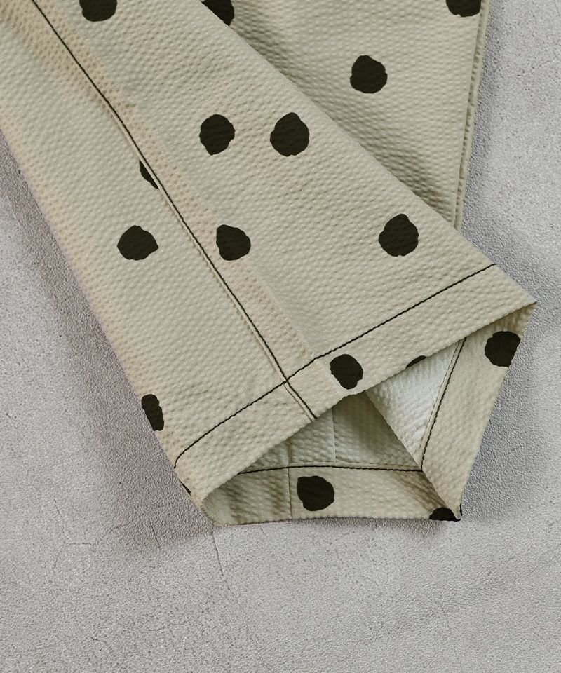 フロントにタックが入っているので、腰から太もも辺りはゆったりした履き心地。