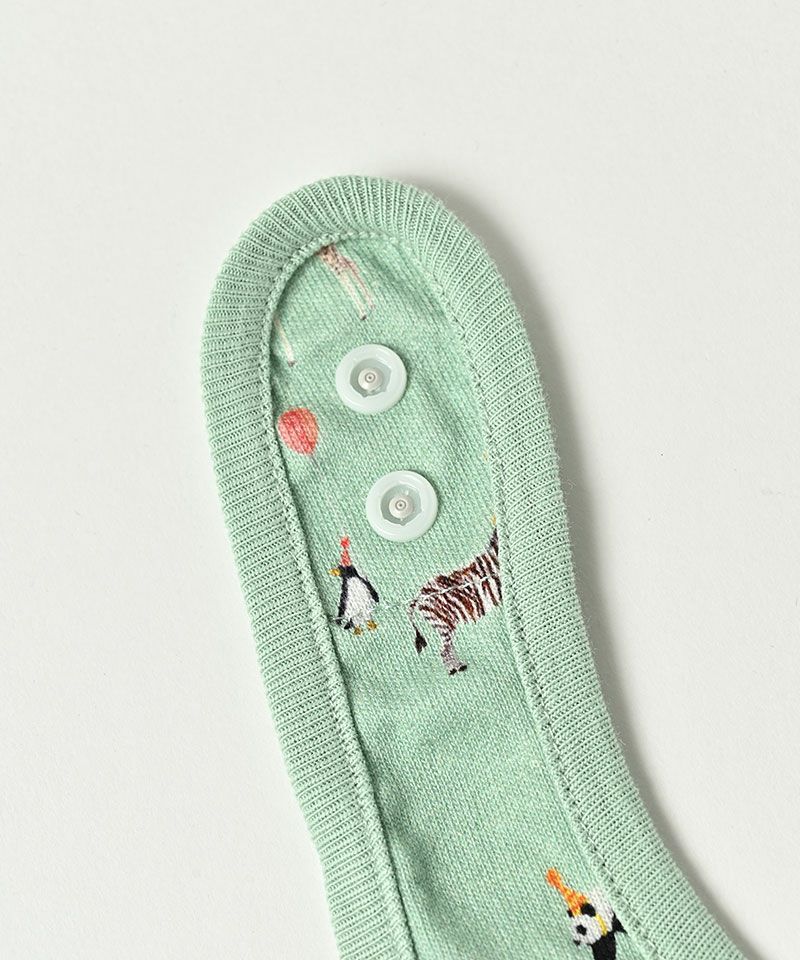 表は柔らかく肌触りの良いガーゼ天竺を使用し、裏面は水を通しにくい撥水ニット仕様。