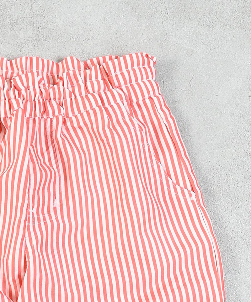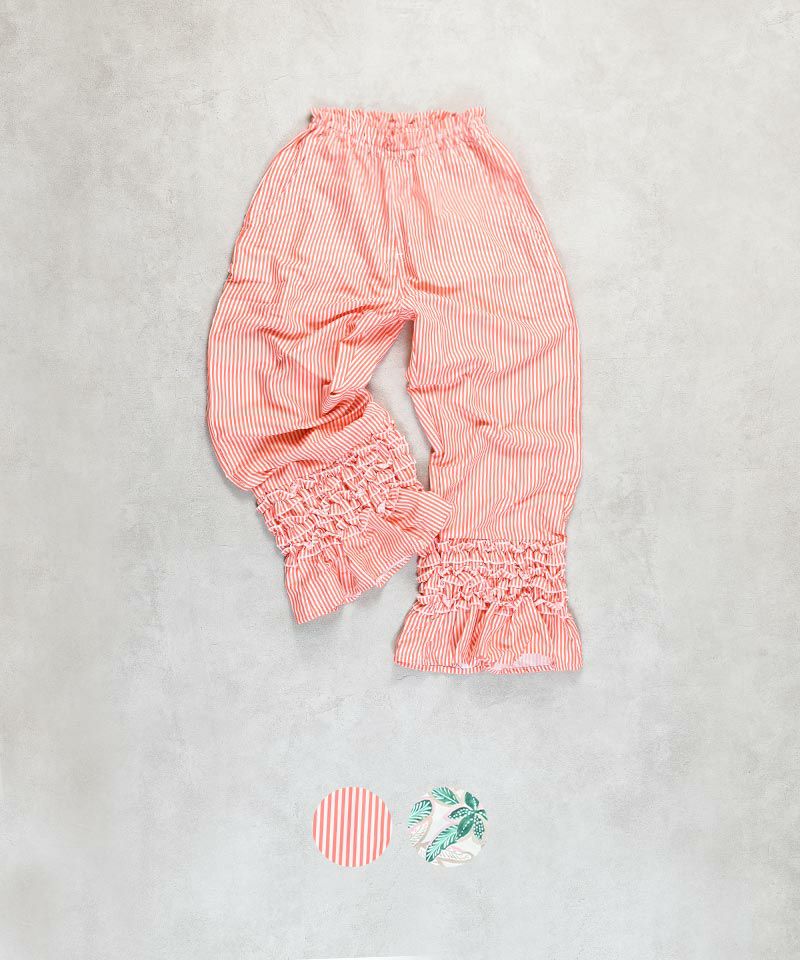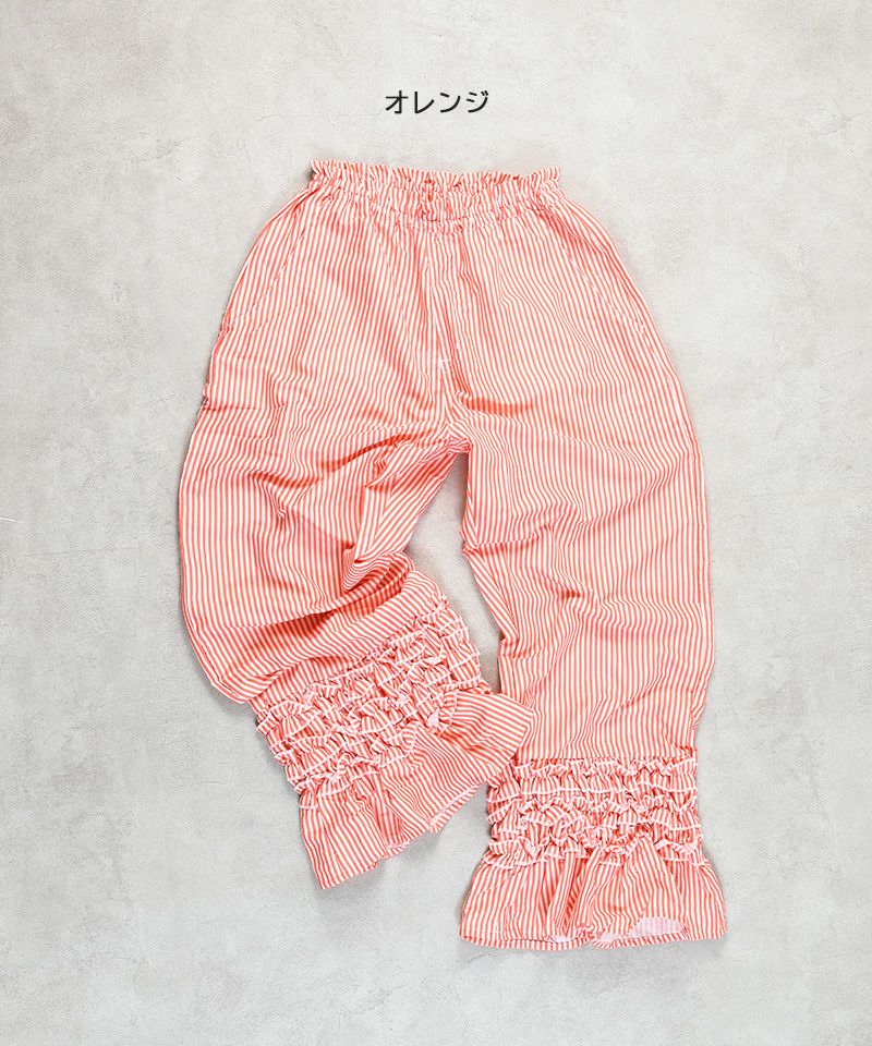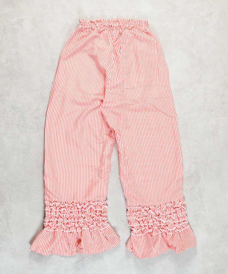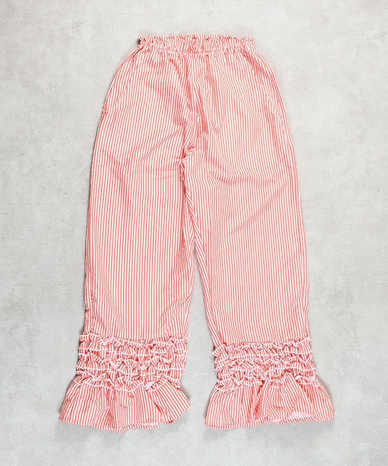 足口にフリルを施した、リラックス感あふれるフレアシルエットボトム。