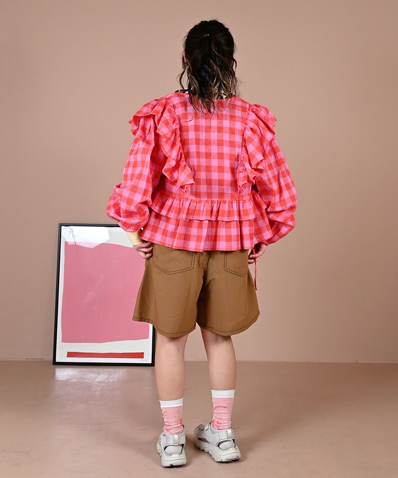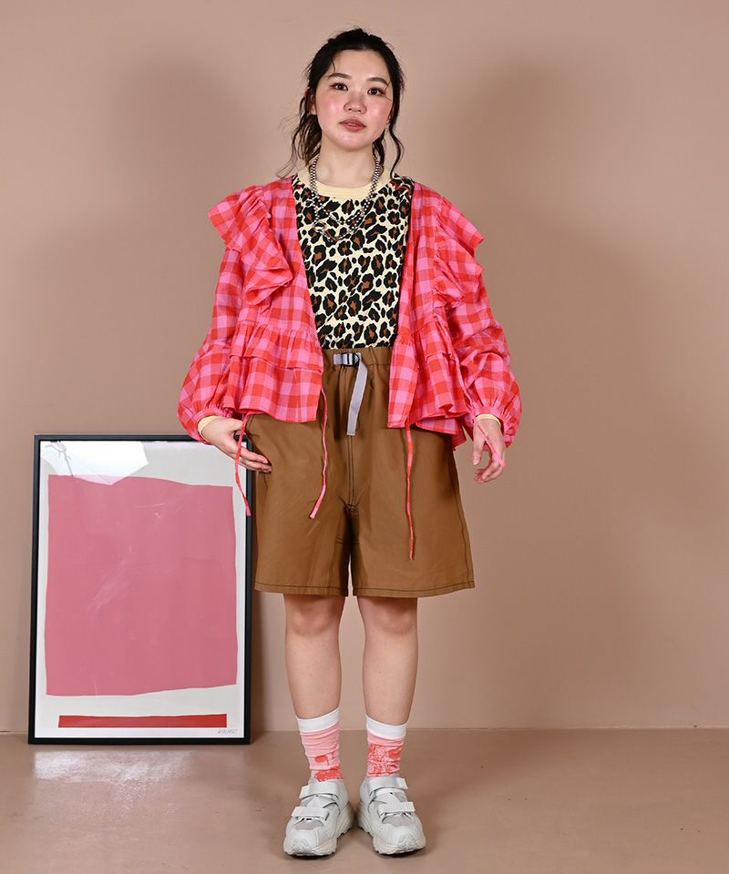 ウエストの中央部分には、コーデのアクセントになる飾りベルト付き!