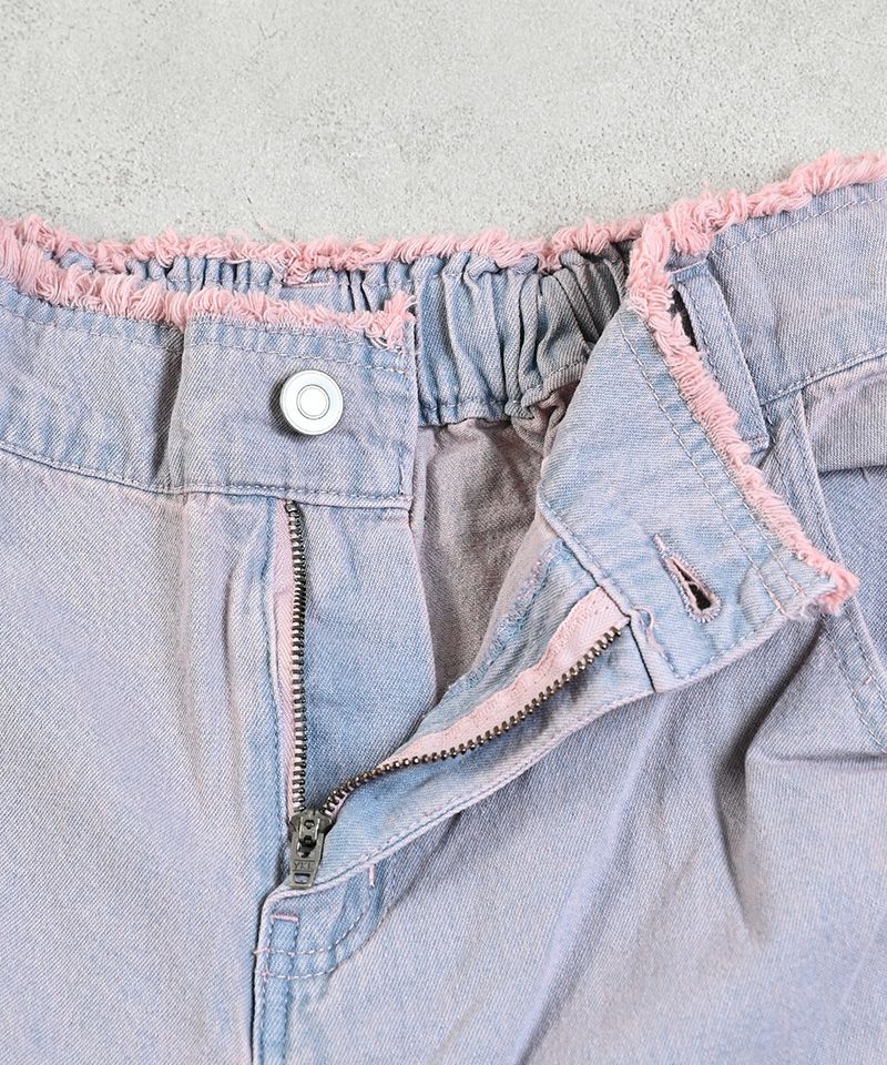 着用時の摩擦により淡い色のベルトやバッグ、他の衣類等に色移り致しますので、ご注意ください。