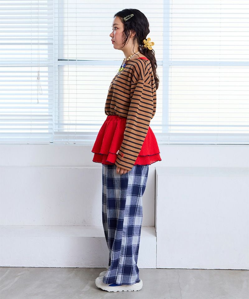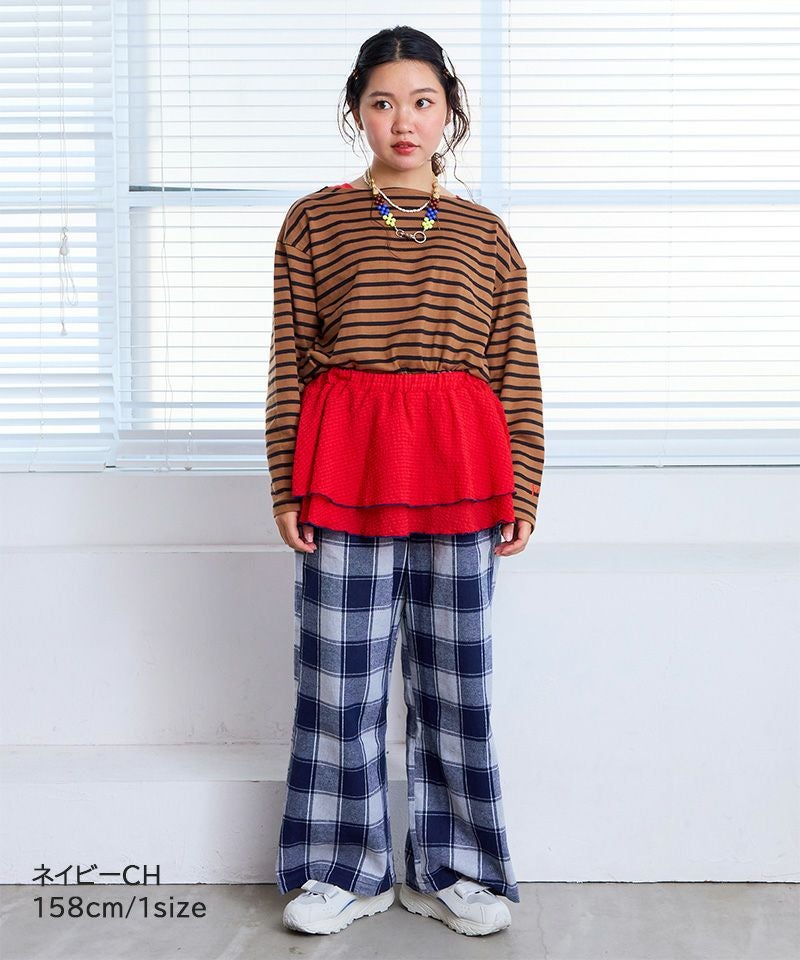 ウエストはゴム仕様で、タックインコーデも可愛く仕上がります。