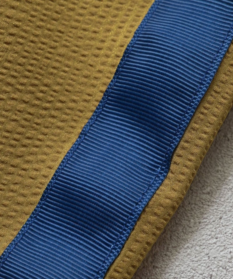 ウエストは総ゴム仕様で動きやすく、配色コードのドロストでフィット感の調整も可能です。
