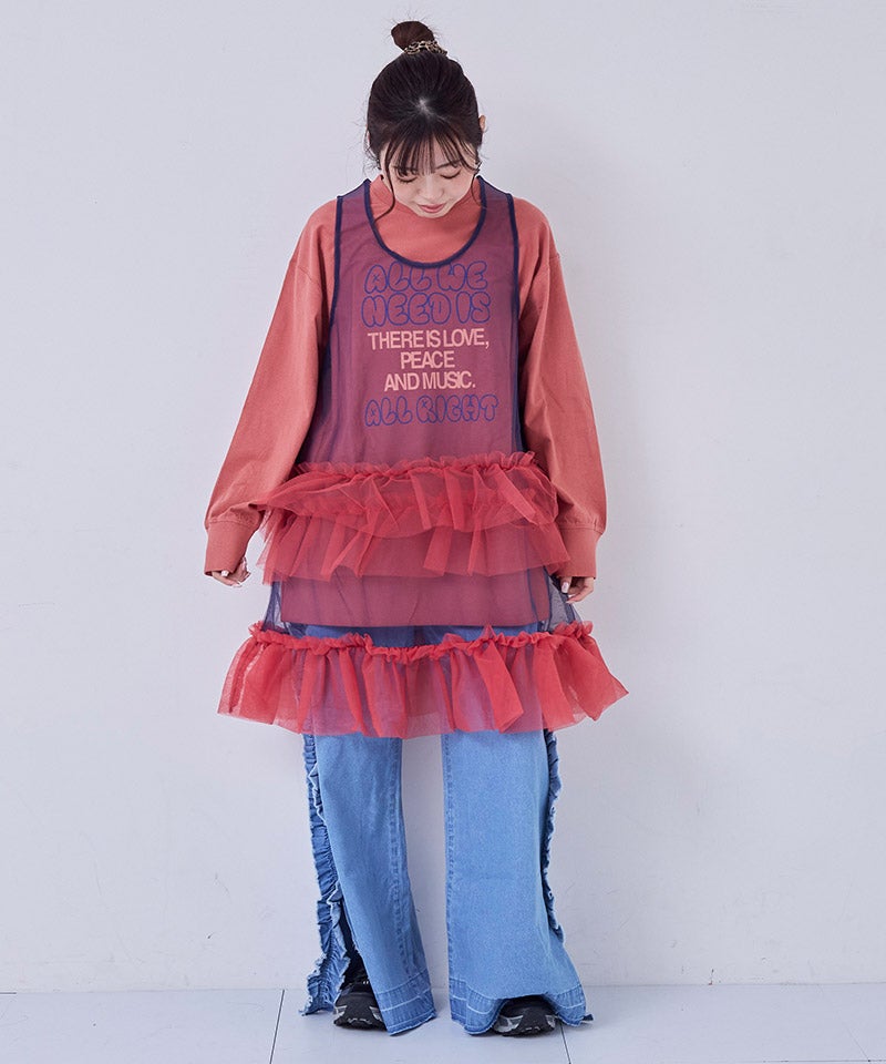 チュールやフリルアイテムと合わせれば、トレンド感たっぷりのガーリーミックススタイルが完成します。