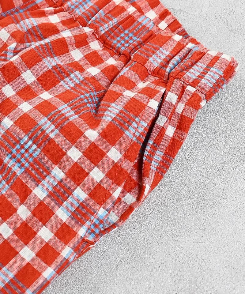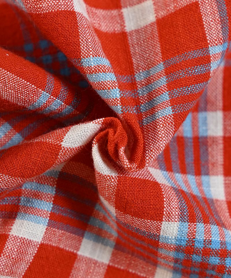 「レッドCH」につきまして、生地の特性上、他のカラーと比べて総丈が1cm程度短い仕上がりとなっております。