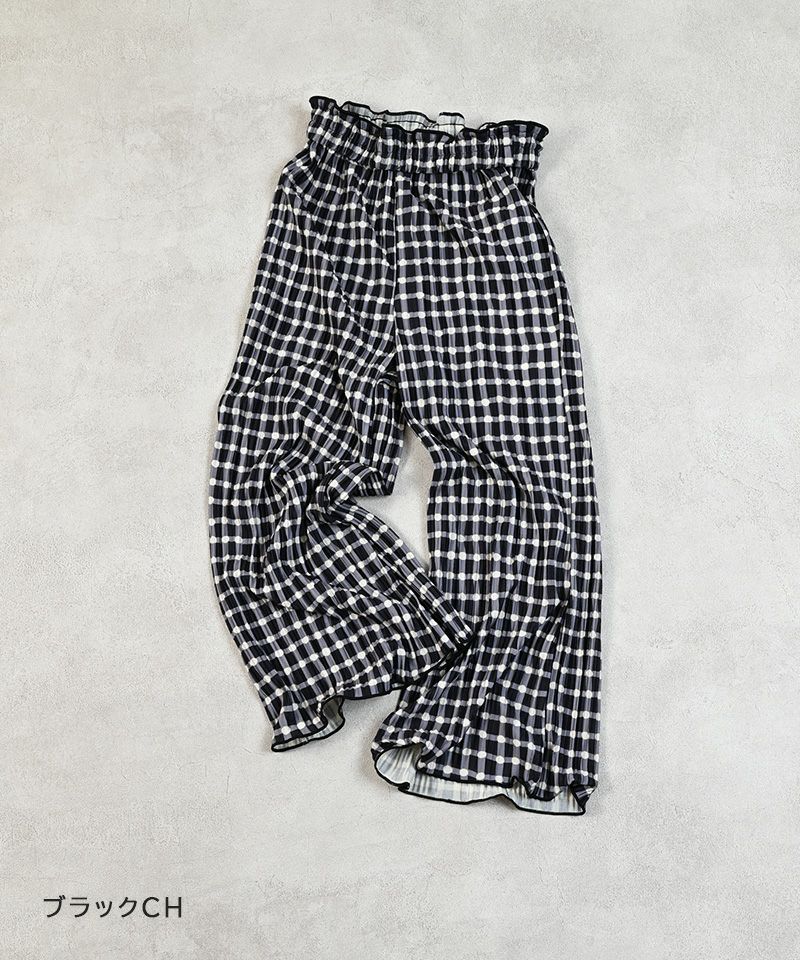 マーキーズオリジナルのチェック柄が印象的なフレアパンツ。