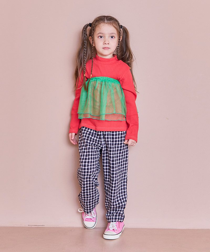 パンツは総柄でポップな雰囲気に仕上げ、チュールはふんわり軽いボリューム感が魅力。