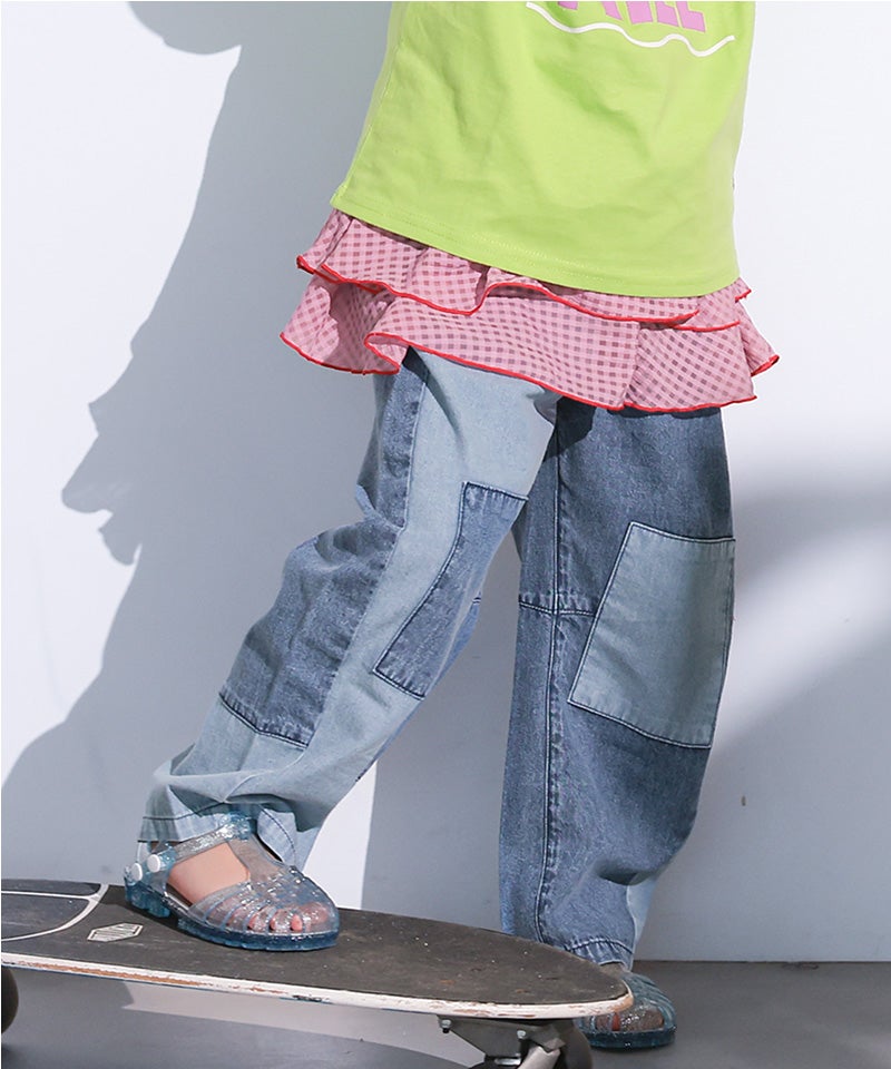 軽やかなチェック素材を使用したフリルレイヤードスカートです。