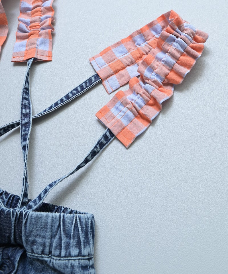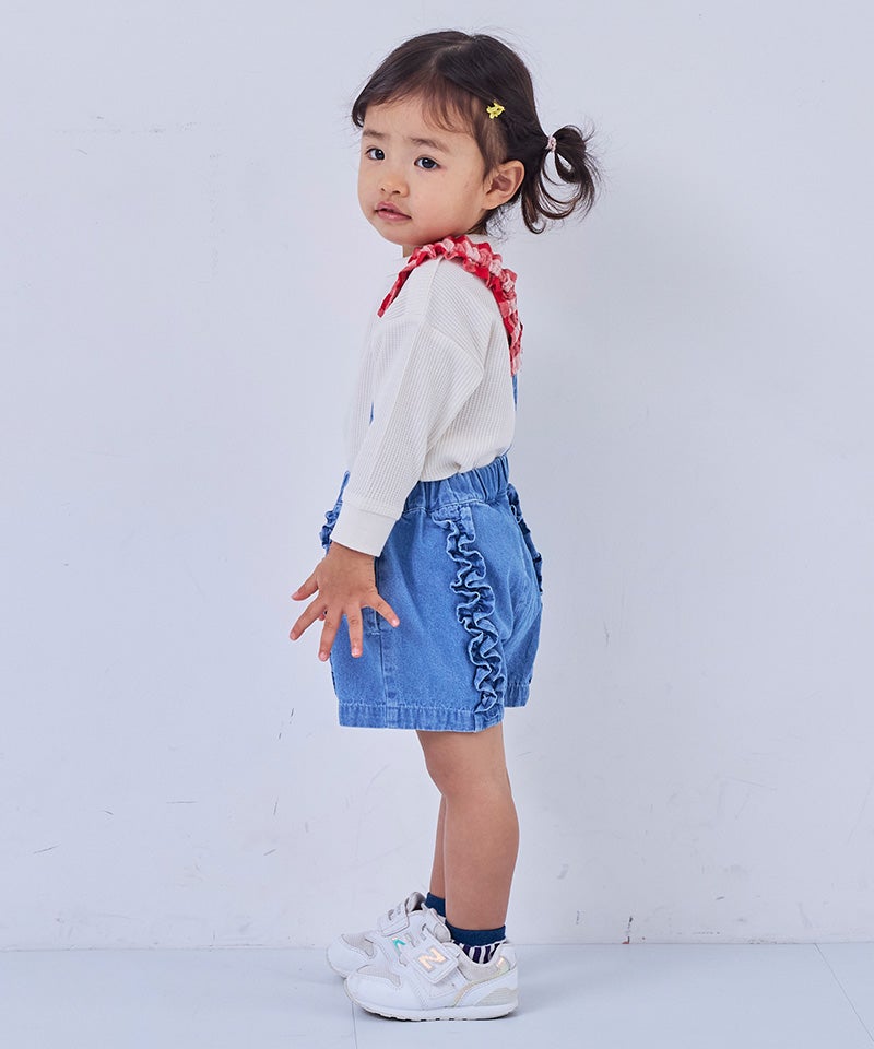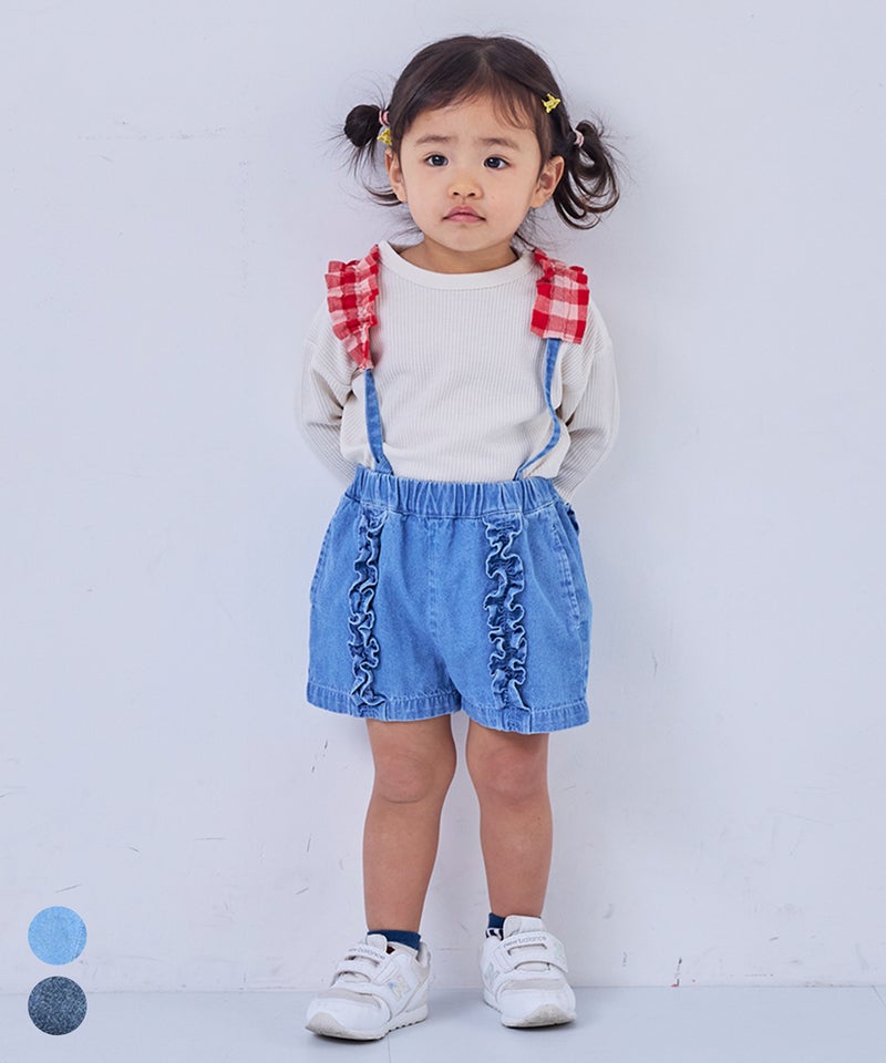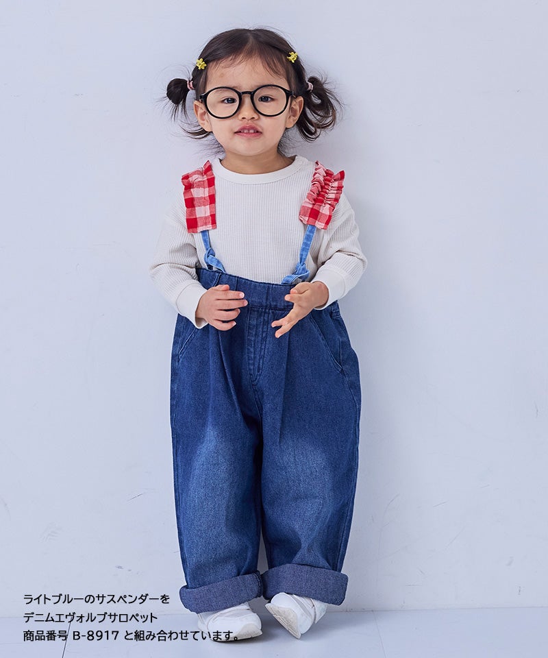デニムエヴォルブサロペット(b-8917)の肩ヒモを付け替えたコーデも可愛いです♪