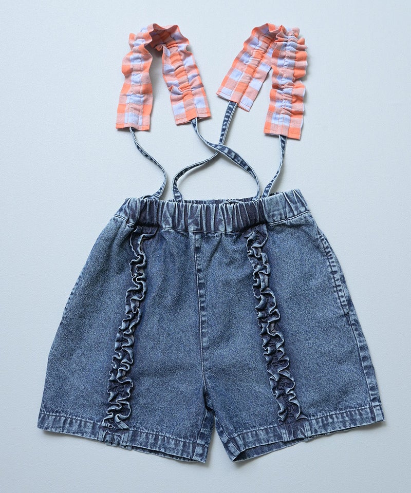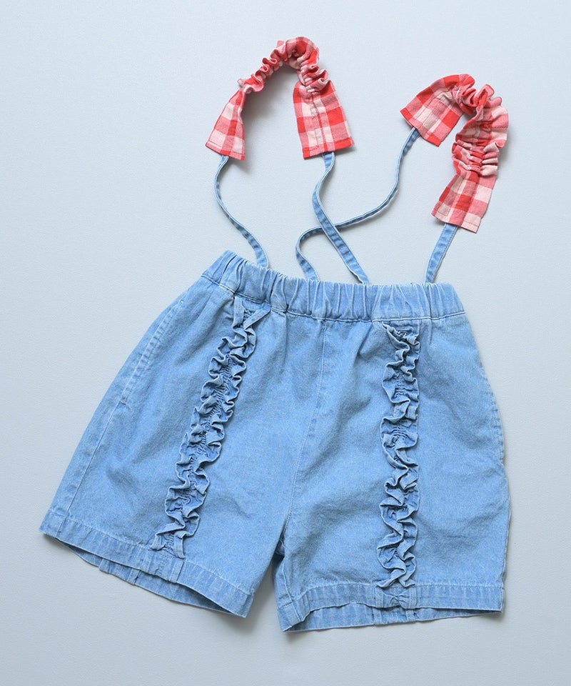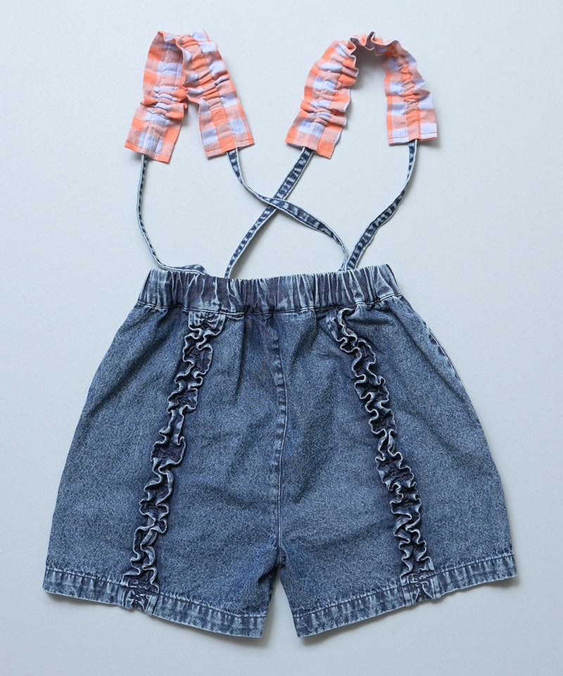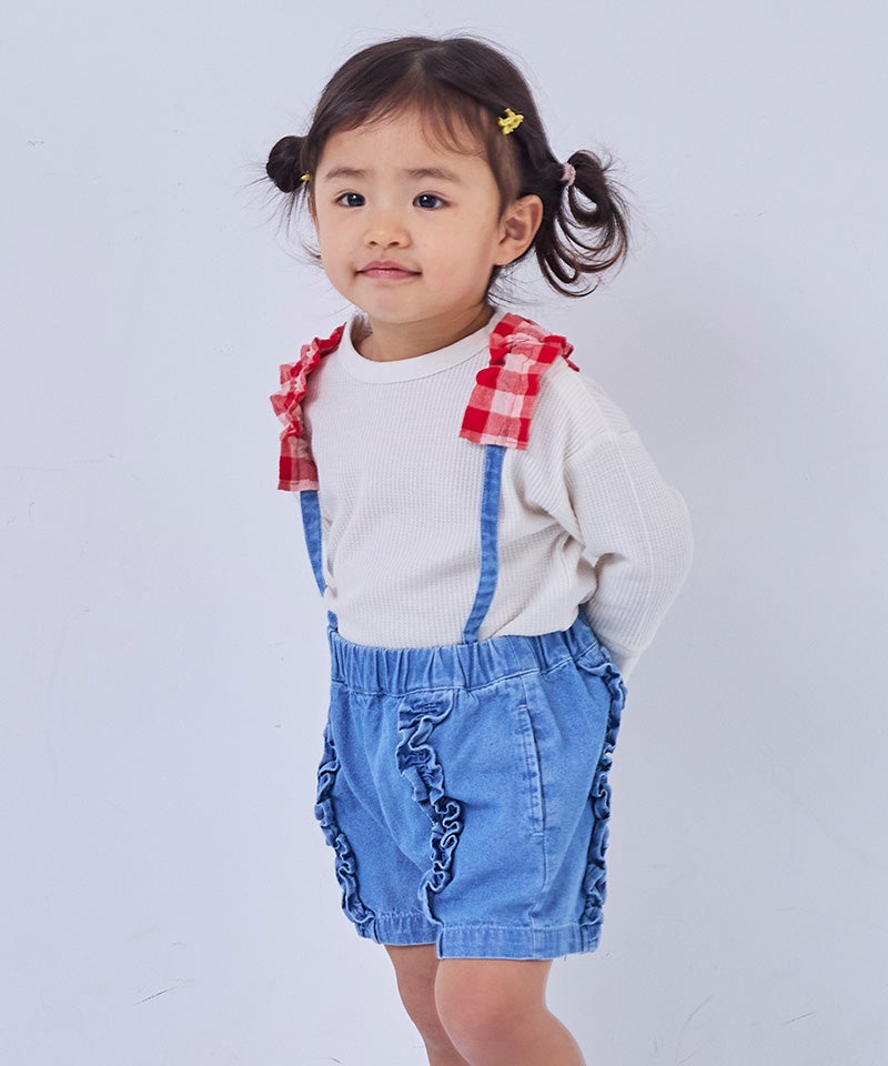 配色のギンガムチェックフリルがガーリーなアクセントになり、シンプルなトップス合わせでも華やかな印象に仕上げてくれます。