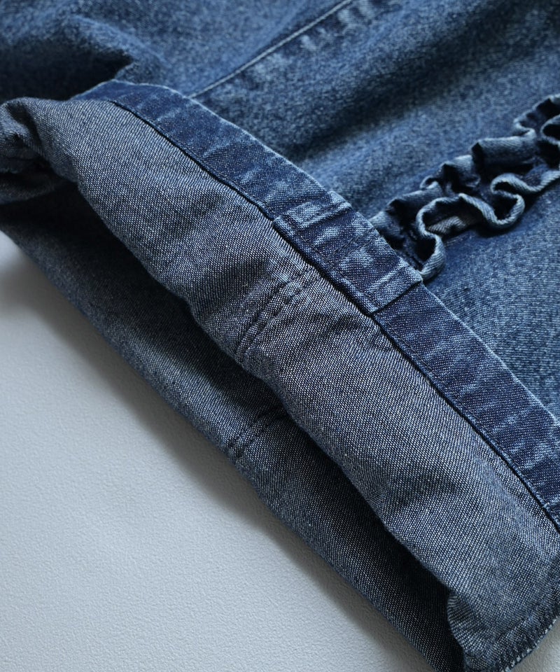 フロントにあしらった立体感のあるフリルが目を引くショートパンツです。