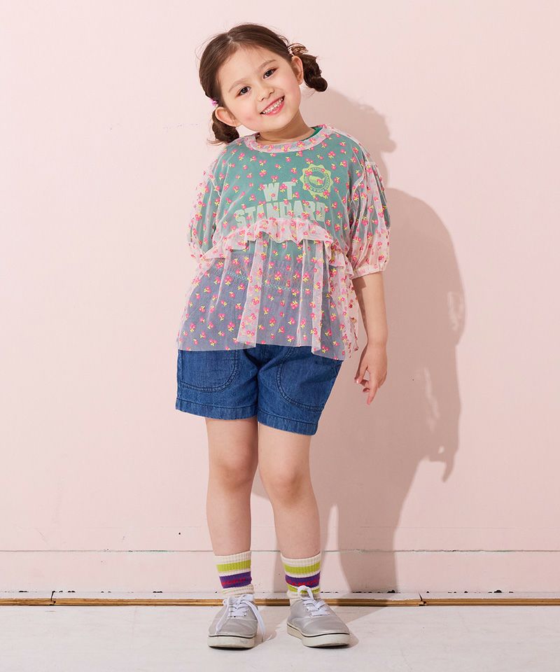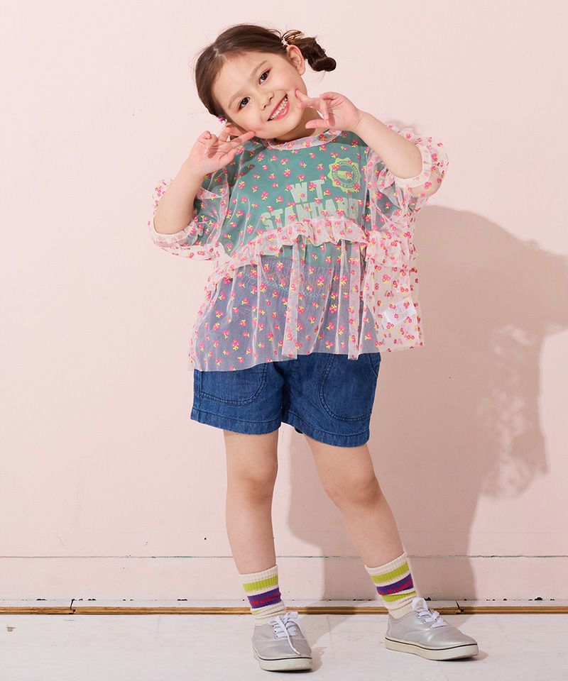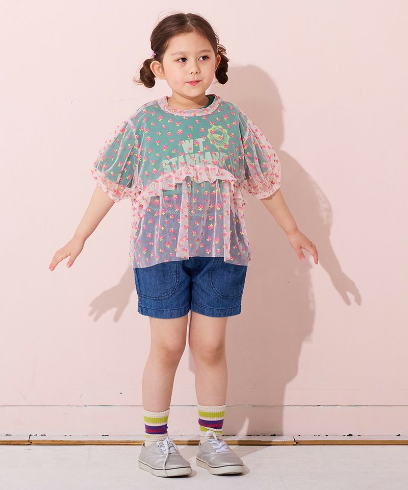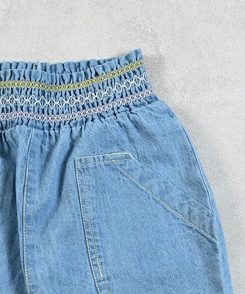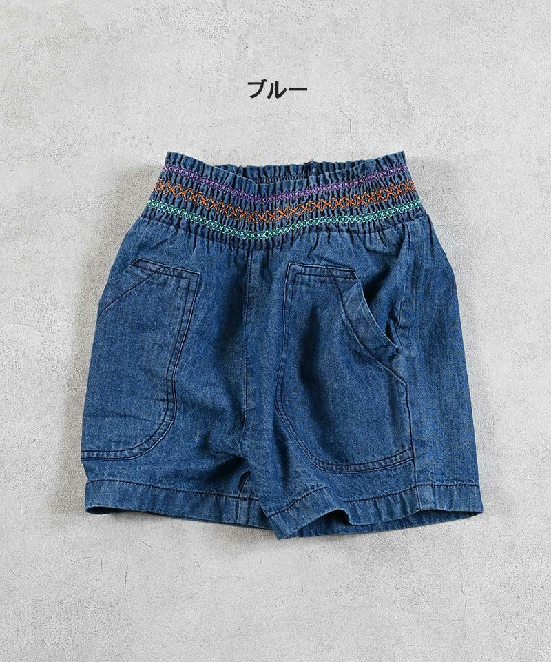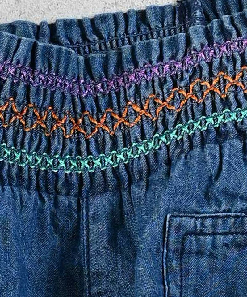 カラフルな刺繡が可愛らしい印象のキュロットパンツ。