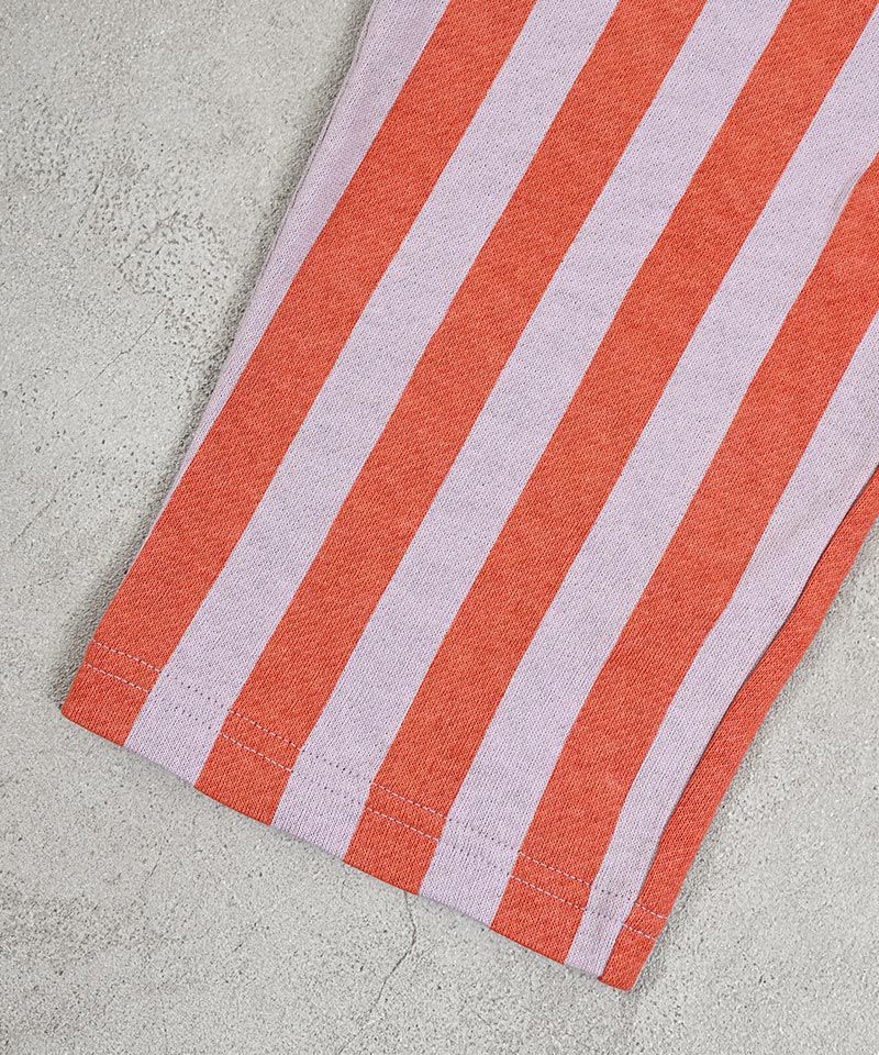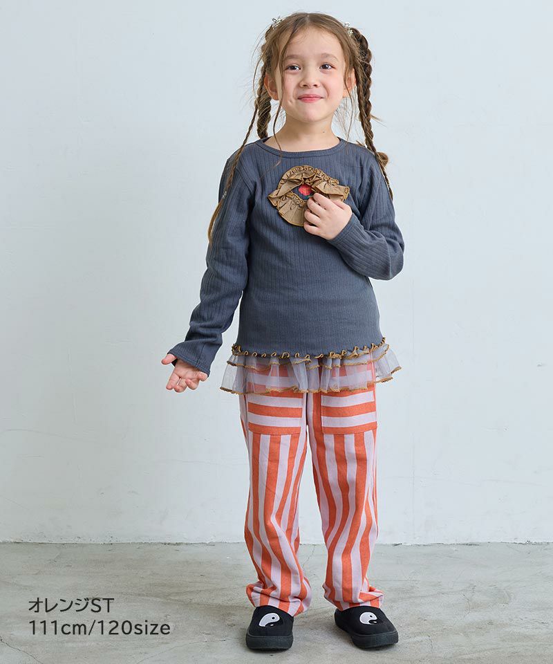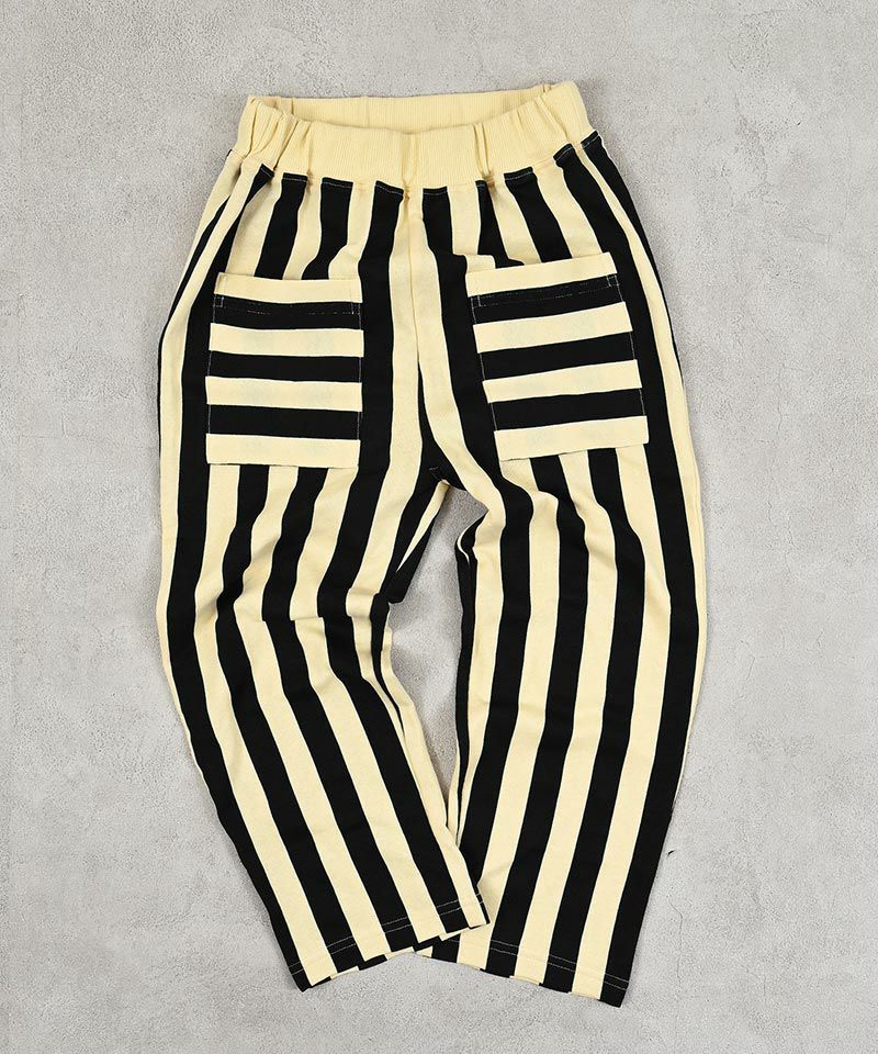 目を引く配色ストライプ柄がコーディネートの主役になるロングパンツ。