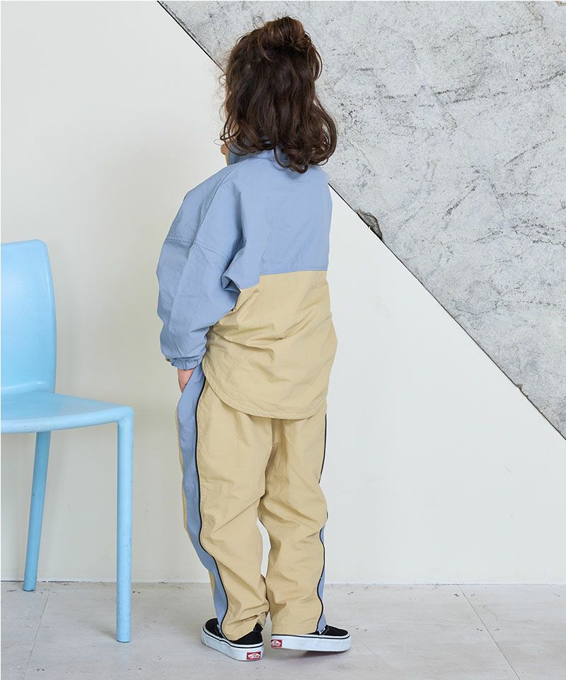 軽いシャカシャカ素材のロングパンツ。