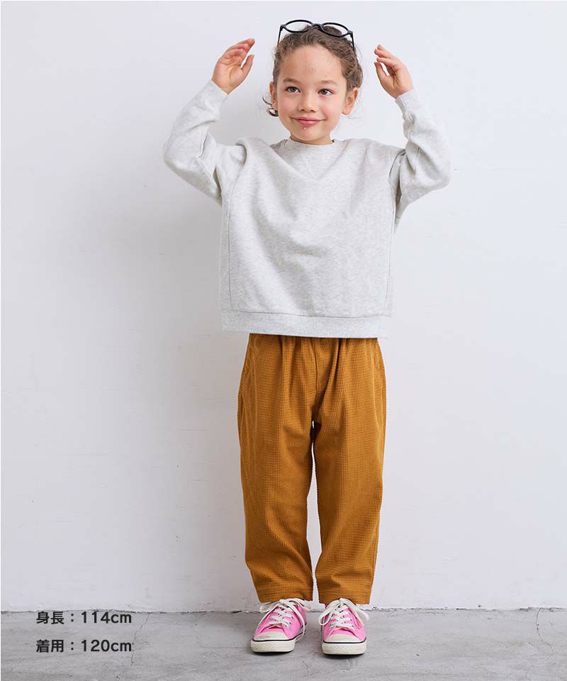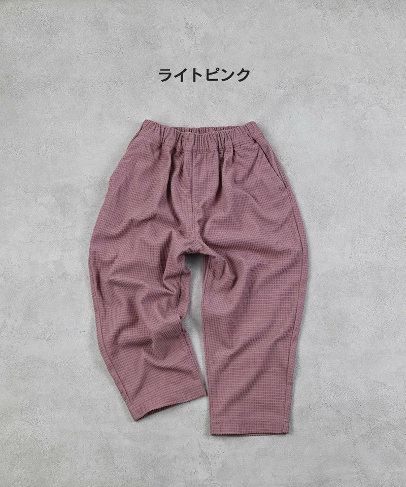 ポコポコしたワッフルのような表面感が特徴的なコーデュロイパンツ。