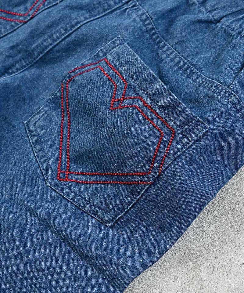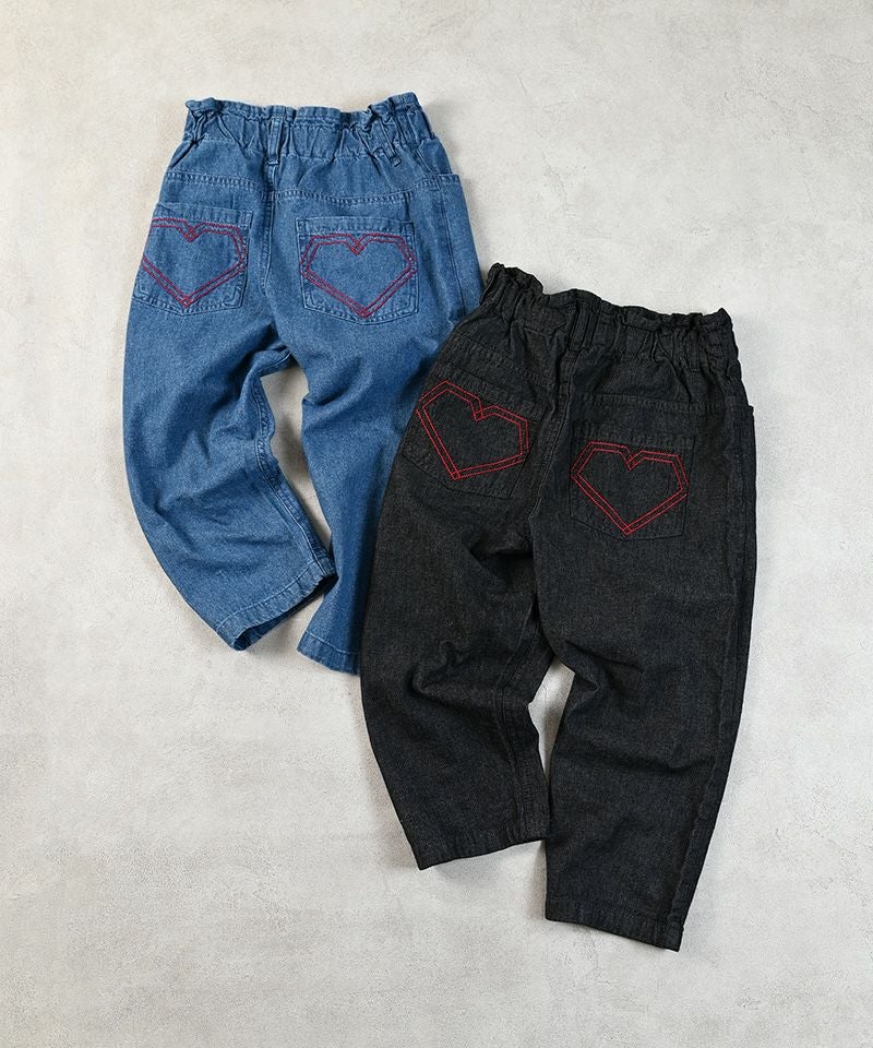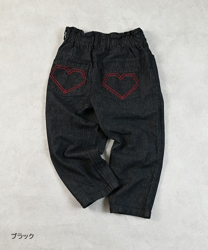 バックポケットにはハートの刺繍を施し、さりげなく可愛らしさを演出します。