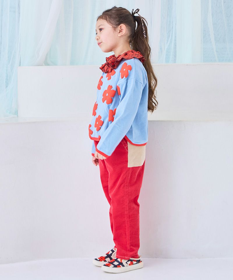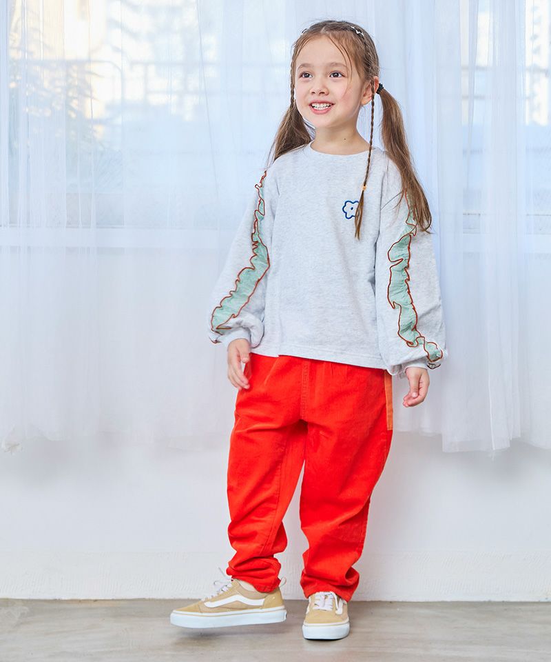 存在感のあるパンツなので、どんなトップスでも合わせやすいです。