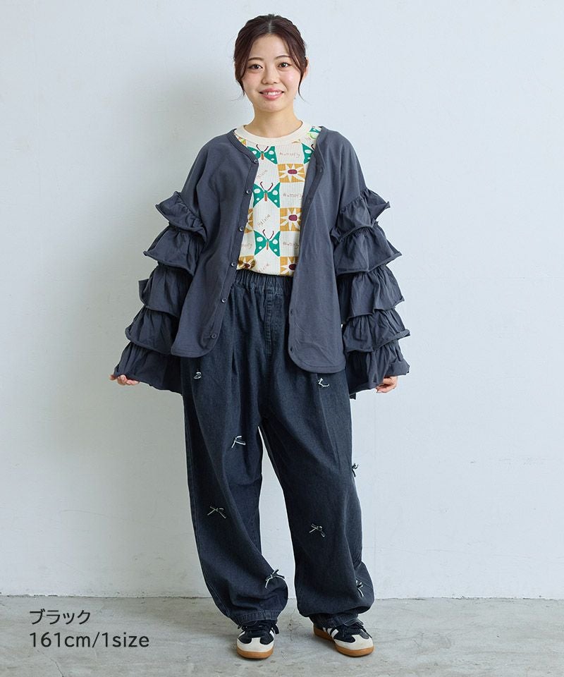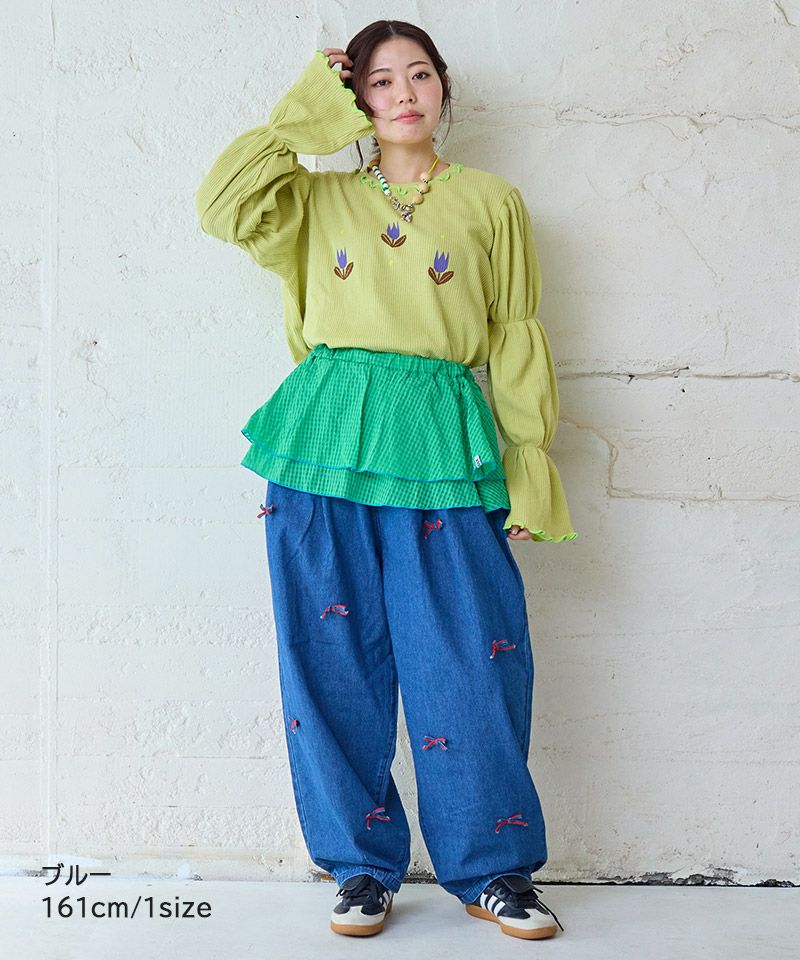 リボンいっぱいデニムバレルパンツ / 大人サイズ