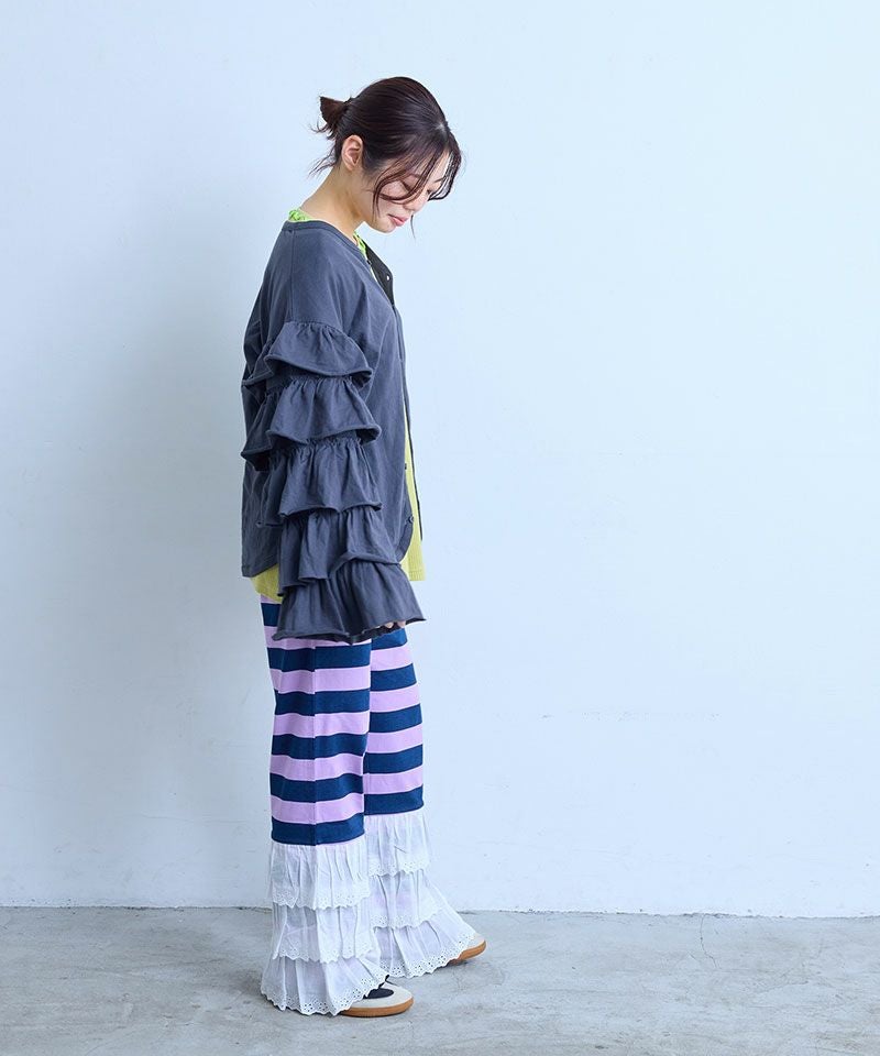 レースフリルティアードボーダーパンツ / 大人サイズ