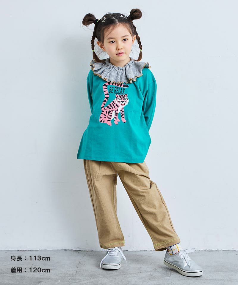 タックインをして色鮮やかなプリントを強調するスタイルも◎