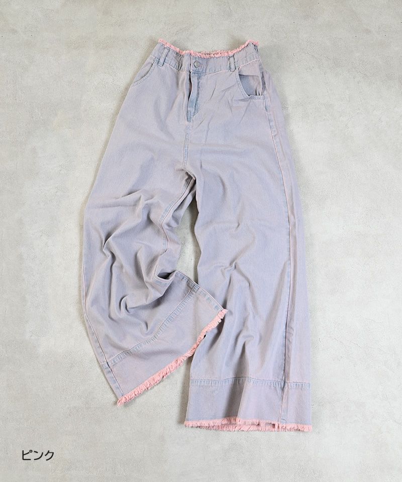 着用時の摩擦により淡い色のベルトやバッグ、他の衣類等に色移り致しますので、ご注意ください。