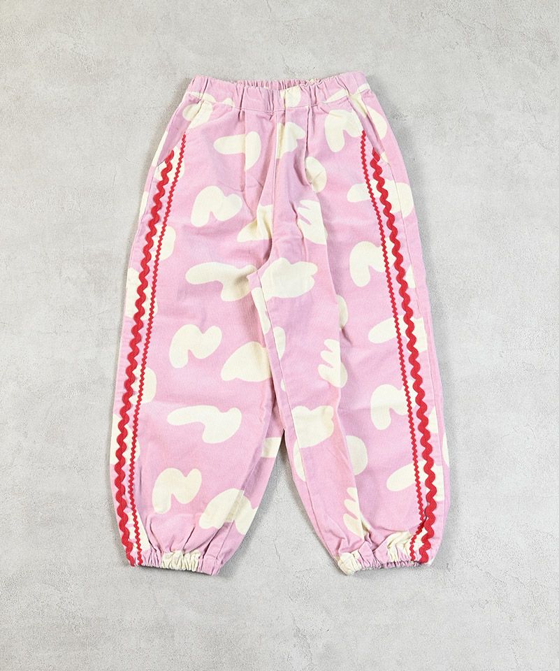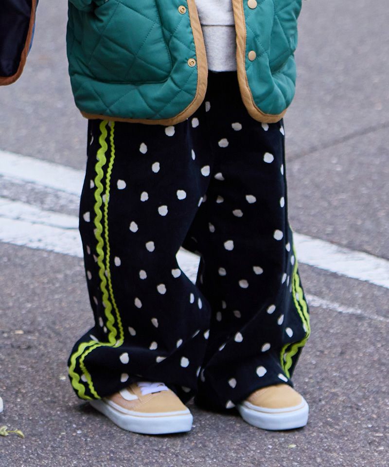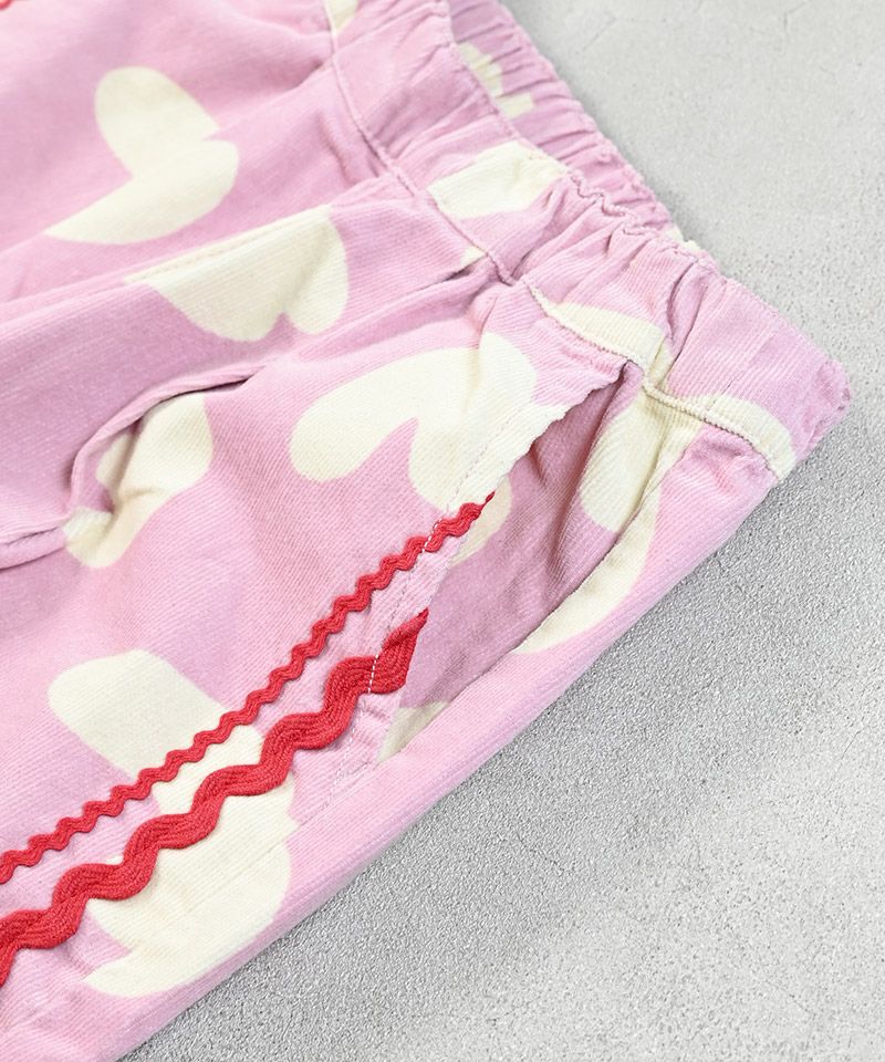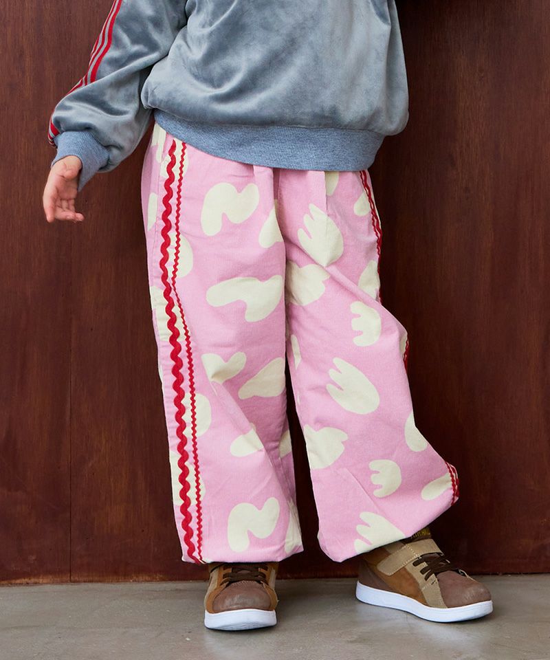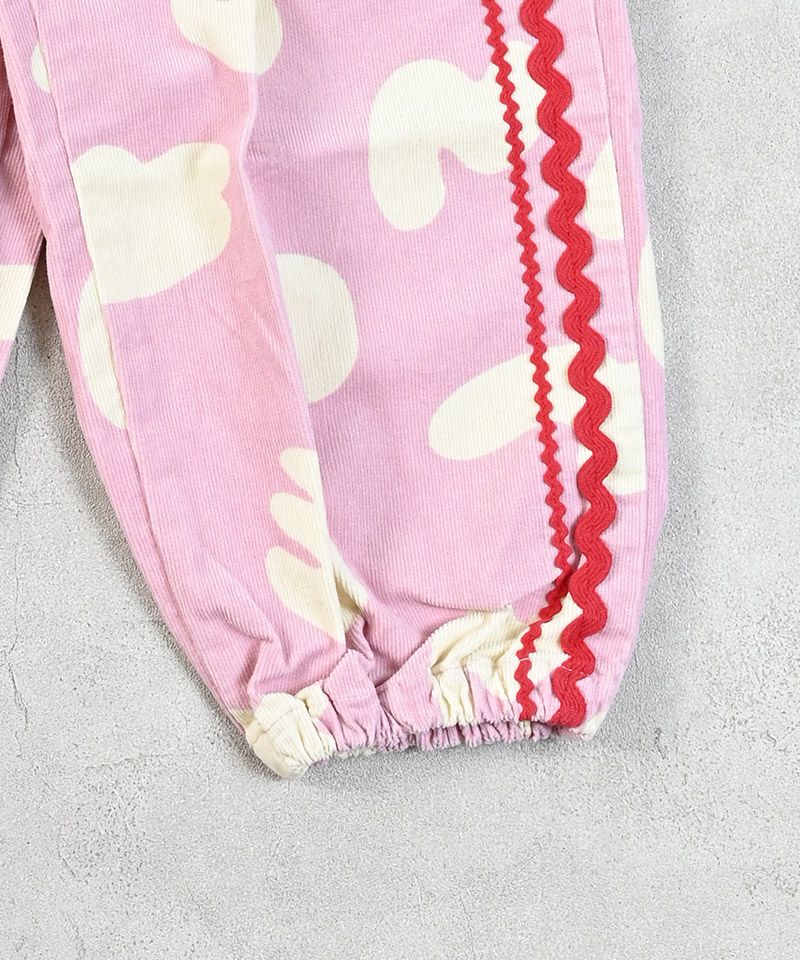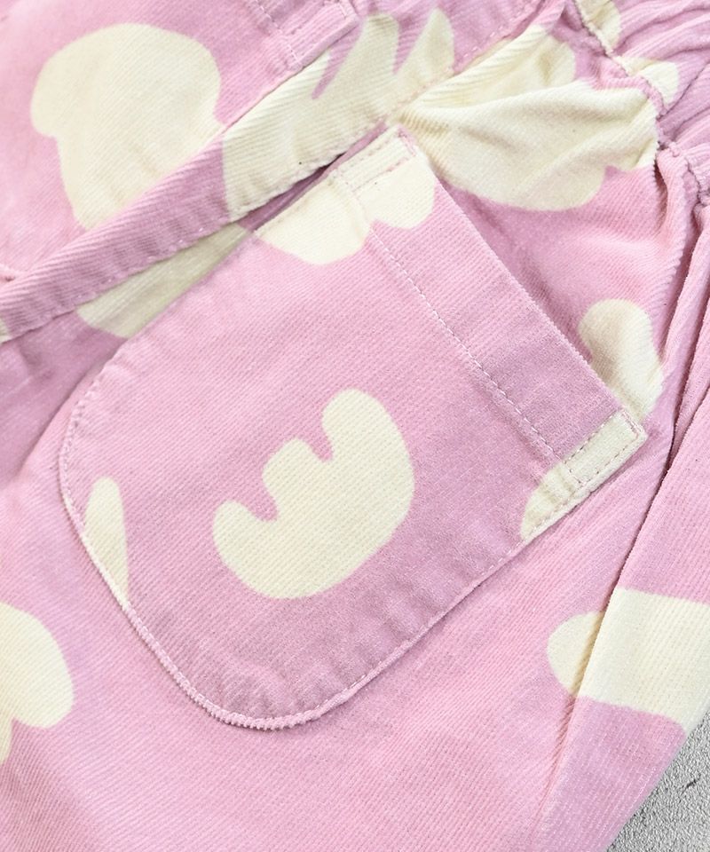 やわらかなコーデュロイ素材にポップな柄をのせたデザインパンツ。